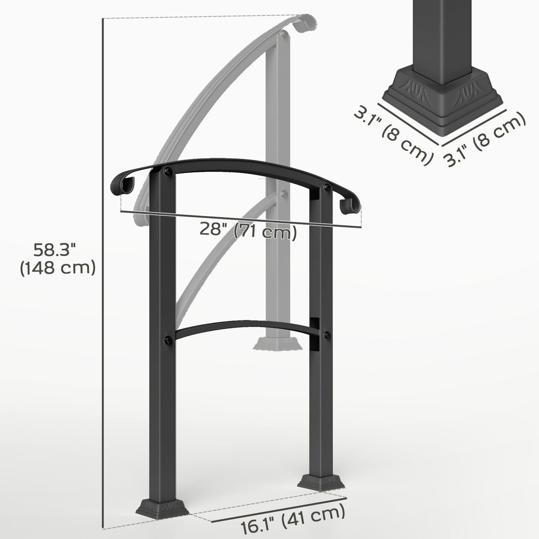 Ensure safety and elegance for your outdoor steps with this versatile adjustable stair railing. The angle can be adjusted from 0-45°, making it adaptable to stair heights up to 16.9" (43 cm) and distances between posts of 16.1" (41 cm). Designed for 1 to 3 steps, this railing can also be used on level surfaces, providing an easy and effective solution for a variety of settings. The powder-coated steel frame with a curly side design offers a non-slip, hand-friendly surface that is both durable and easy to maintain. Installation is quick and simple, thanks to the included wrench, nuts, expansion screws, and other accessories, allowing you to secure the railing to brick, wood, concrete, or metal stairs with ease. Ideal for helping the elderly, pregnant individuals, or those with mobility issues, this railing ensures stability and balance, especially during rainy or icy conditions.