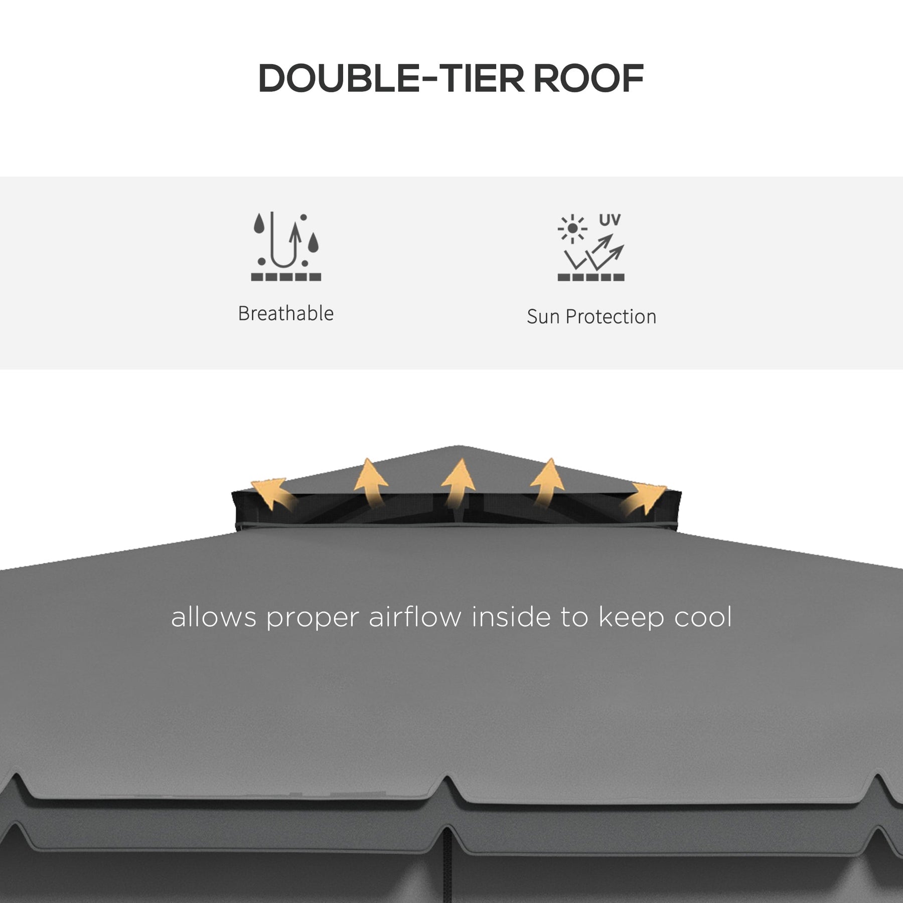 • Double-Tier Roof Canopy: The double-ventilated roof promotes airflow and adds a sophisticated look to your gazebo.