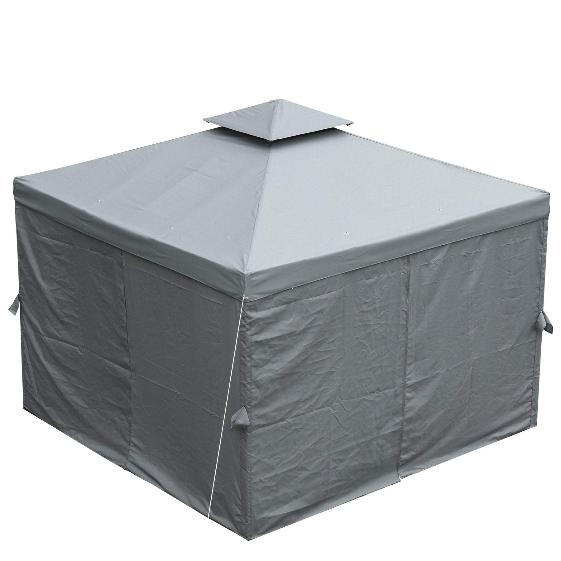 Enhance your outdoor experience with the Outsunny 10x10 gazebo, designed to provide a spacious, comfortable, and private area for any outdoor gathering. This gazebo is ideal for patios, gardens, or backyards, offering protection from the sun, light rain, and wind. It comes with four side panels that create a more intimate and enclosed space, featuring zippered doors for easy access and self-adhesive curtains for quick setup and removal. The double-tier roof not only adds an elegant touch but also ensures optimal air circulation and reduces the risk of rainwater buildup, thanks to eight drainage holes. The durable steel frame provides a solid structure, while 12 ground stakes offer additional stability, ensuring the gazebo stands strong even in windy conditions. Whether you’re hosting a family gathering or relaxing outdoors, this gazebo offers both function and style.