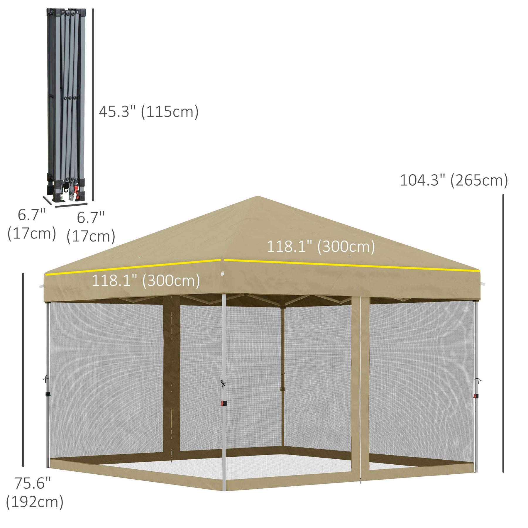 Dimensions: Overall size: 9.8'L x 9.8'W x 8.7'H (295 x 295 x 264 cm). Folding size: 45.25"L x 6.25"W x 6.25"H (115 x 16 x 16 cm). Door height: 6.3'H (192 cm).