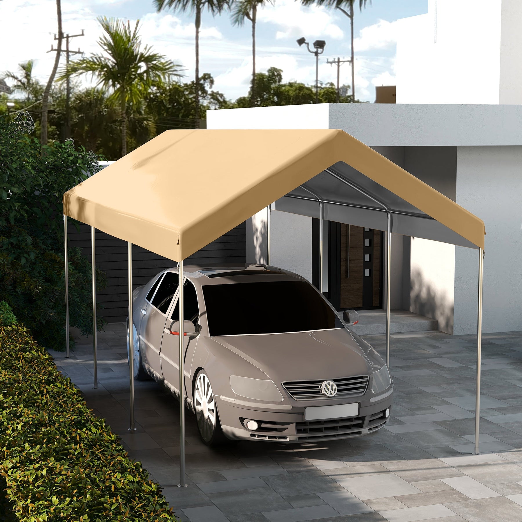 Outsunny 10 x 20ft Carport Replacement Canopy, UV Resistant Garage Car Cover with Ball Bungee Cords, Beige