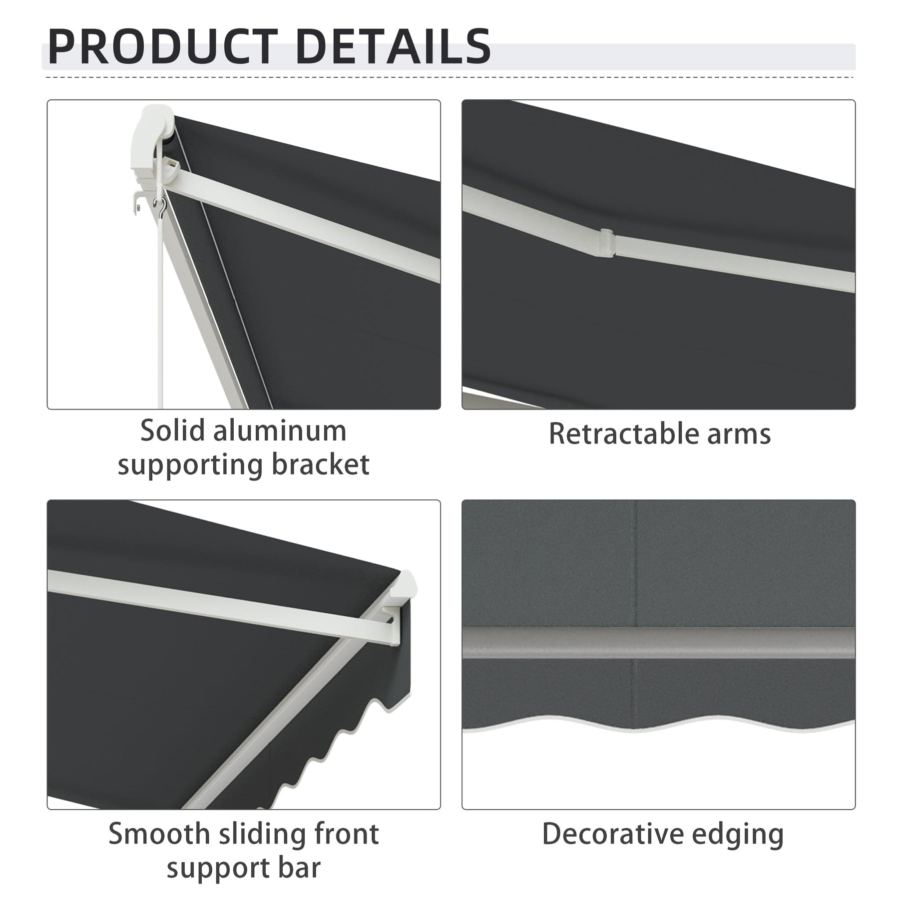 Add comfort and style to your outdoor space with our Automatic Retractable Awning. Designed to provide controllable shade for windows and doors, this awning features both motorized and manual options for flexibility in operation. The motorized mechanism can be controlled remotely, allowing you to easily extend or retract the awning up to 98 feet. In case of power outages, the hand crank ensures you can still operate the awning manually. Made from 270g PU-coated polyester, this awning protects against harmful UV rays while reducing the heat inside your home, helping to lower your cooling bills. The canopy’s height is adjustable from 14-30° with a telescopic arm, allowing you to control the shade based on the sun's angle. Built with a solid aluminum and steel frame, this awning is designed for durability and longevity, making it an excellent choice for any outdoor setting.