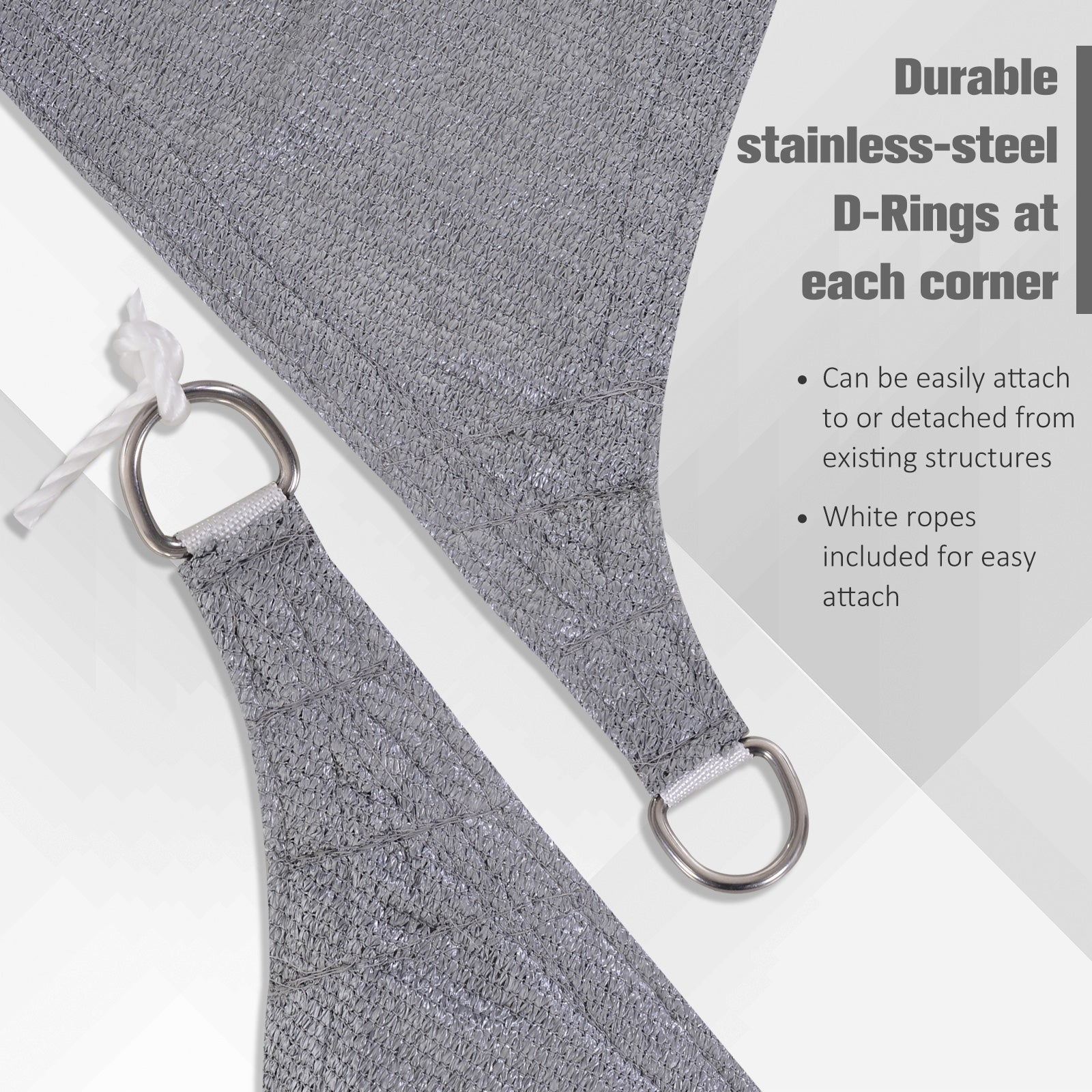 Create a cool and shaded outdoor retreat with this Triangle Sun Shade Sail—an economical and effective way to protect your deck, garden, backyard, pool area, or children's play zone from harsh sunlight. Crafted from high-density woven polyethylene (PE) fabric, this durable and breathable shade significantly reduces temperatures beneath it while blocking harmful UV rays. The stainless-steel D-rings at each corner provide secure attachment to existing structures, allowing for easy installation and removal. With its lightweight, easy-to-clean design, this weather-resistant sunshade is perfect for enhancing outdoor comfort while adding a stylish touch to any space.