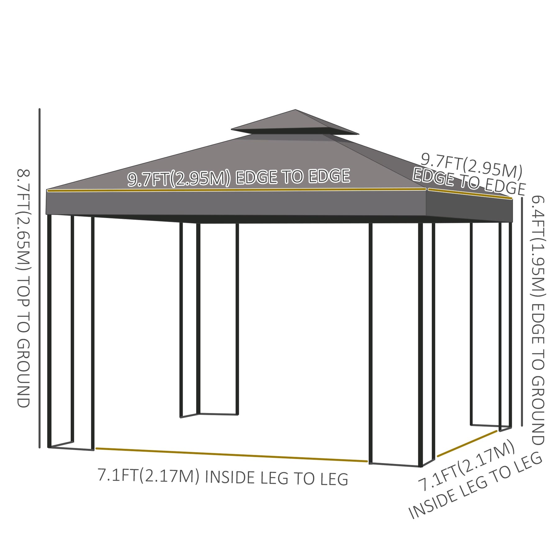 Create a private and comfortable outdoor retreat with this 10x10 Gazebo with Side Walls. Perfect for your patio, backyard, garden, or any outdoor space, this gazebo provides effective protection against the elements. Equipped with 4 side panels, it offers a private space with 4 zipped doors for easy access and self-adhesive curtains for simple assembly or removal. The double-tier roof, made from durable polyester with a PA coating, not only provides reliable rain protection but also promotes air circulation. The 8 leaking holes in the roof help prevent water accumulation, ensuring the structure remains dry and stable. Built with a solid steel frame, this gazebo offers durability and stability, with 12 ground stakes to ensure it stays securely in place. Whether you're hosting a party or just relaxing outside, this gazebo is an excellent choice for any outdoor gathering.