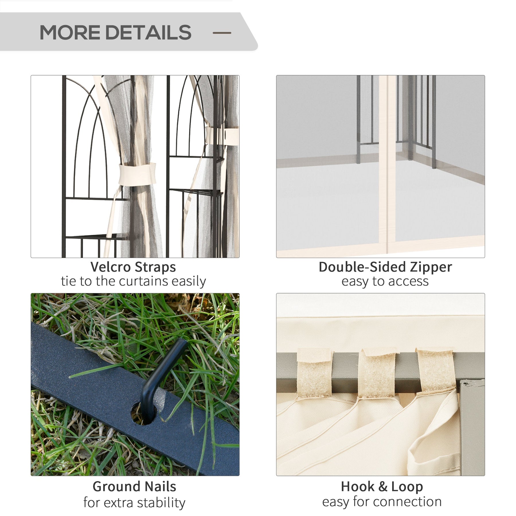 The frame is built from strong metal railing, adding stability and support to the structure. To ensure it stays securely in place, 8 ground stakes are included. The 4 removable zippered mesh sidewalls offer protection from mosquitos while allowing for optimal ventilation. Additionally, the triangular shelves at each corner provide a functional space to display plants or decor, adding both practicality and style to your gazebo.