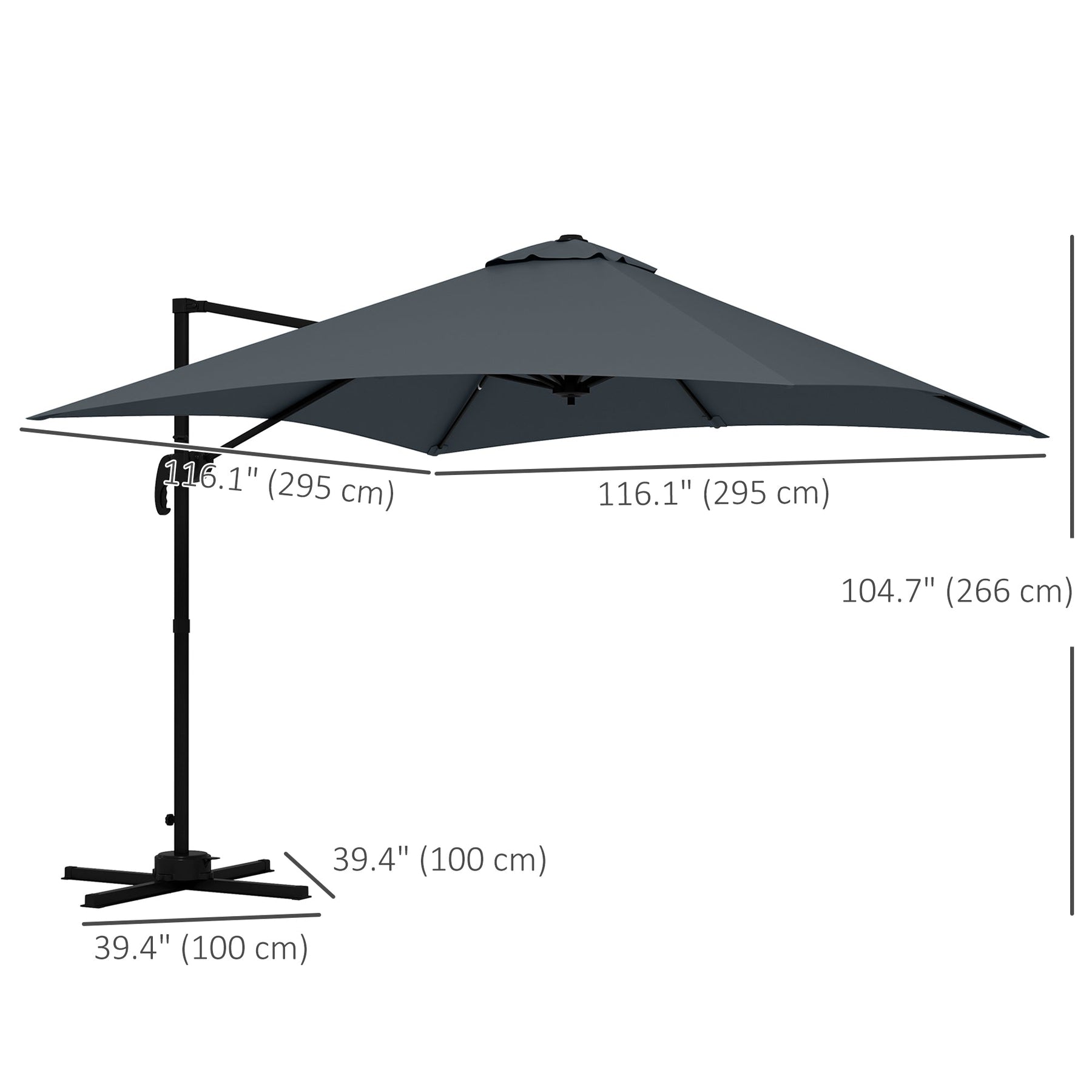 Outsunny 10x10ft Cantilever Umbrella Square Market Parasol Adjustable Outdoor Patio Shade Dark Grey Rotatable