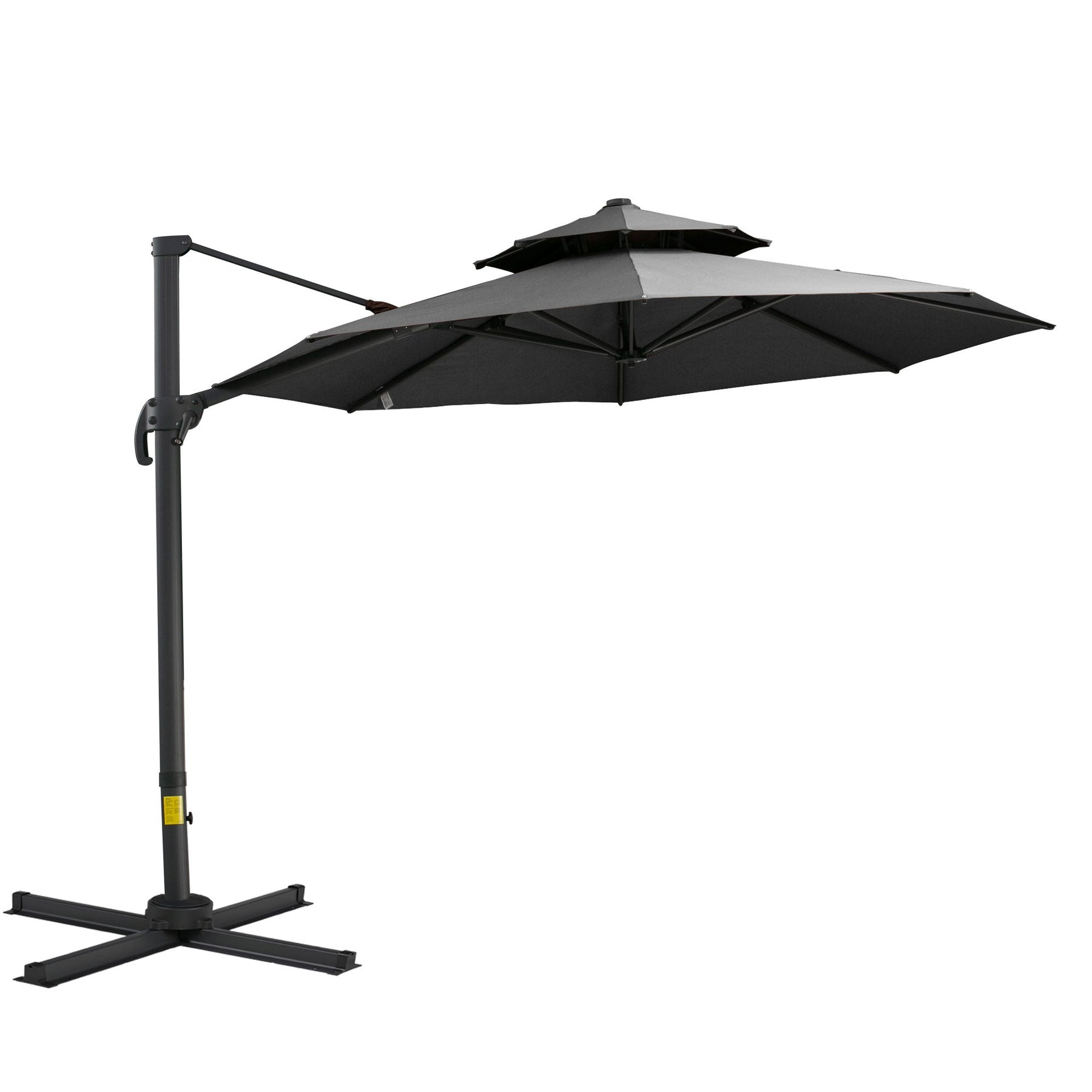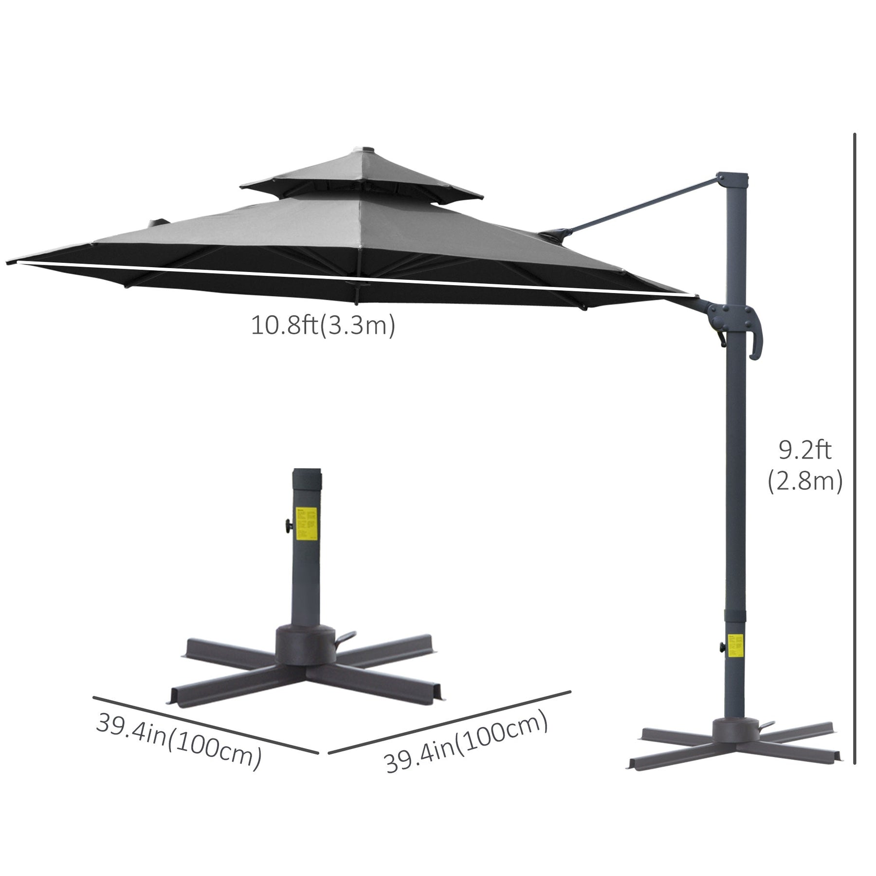 Outsunny 11ft Outdoor Cantilever Umbrella Sun Shade with Rotatable Double-top Canopy Adjustable Angle for Garden Lawn