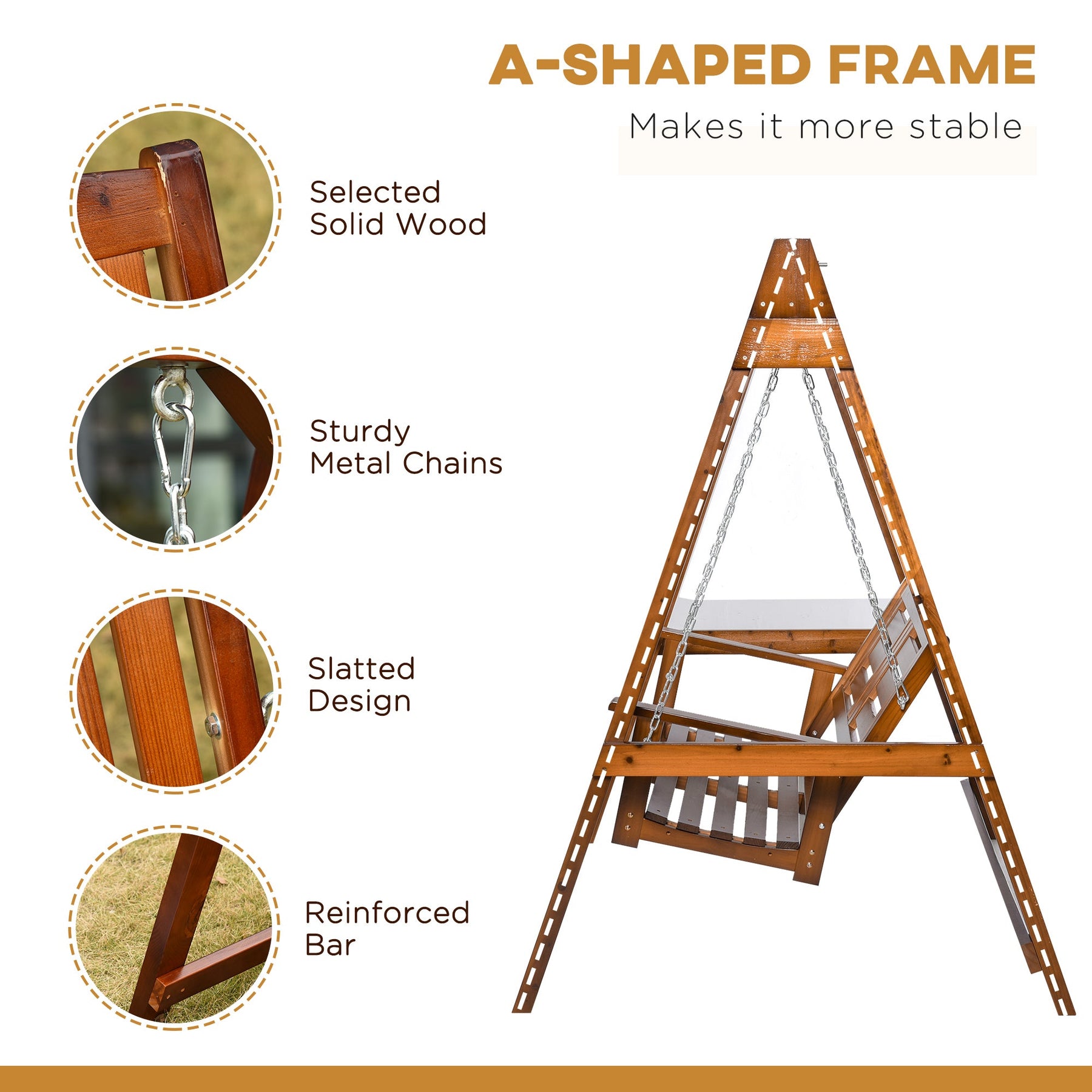 Natural Wood Frame: The strong, reliable wooden frame ensures stability and durability, while adding a touch of natural beauty to your patio or garden.