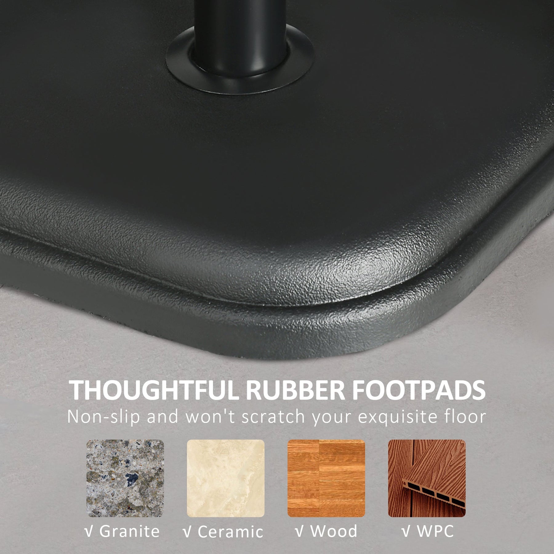 Ensure your outdoor umbrella stays stable and secure with the Patio Umbrella Base. Specifically designed for tables with a hole, this base is ideal for parasol canopies up to 98.4" (2.5 m) in diameter, with poles ranging between 1.3" (3.2 cm) and 1.5" (3.8 cm) in diameter. Weighing 24 lbs (11 kg), this heavy-duty base is pre-filled with concrete for enhanced stability and durability. The base features a PE plastic bottom for added strength, and the metal pole is coated with powder coating to withstand harsh outdoor elements. With an easy-to-use tightening knob, you can quickly secure your umbrella in place, preventing it from tipping over on windy days. Perfect for use with Outsunny umbrellas, this umbrella stand will keep your outdoor space stylish and safe.
