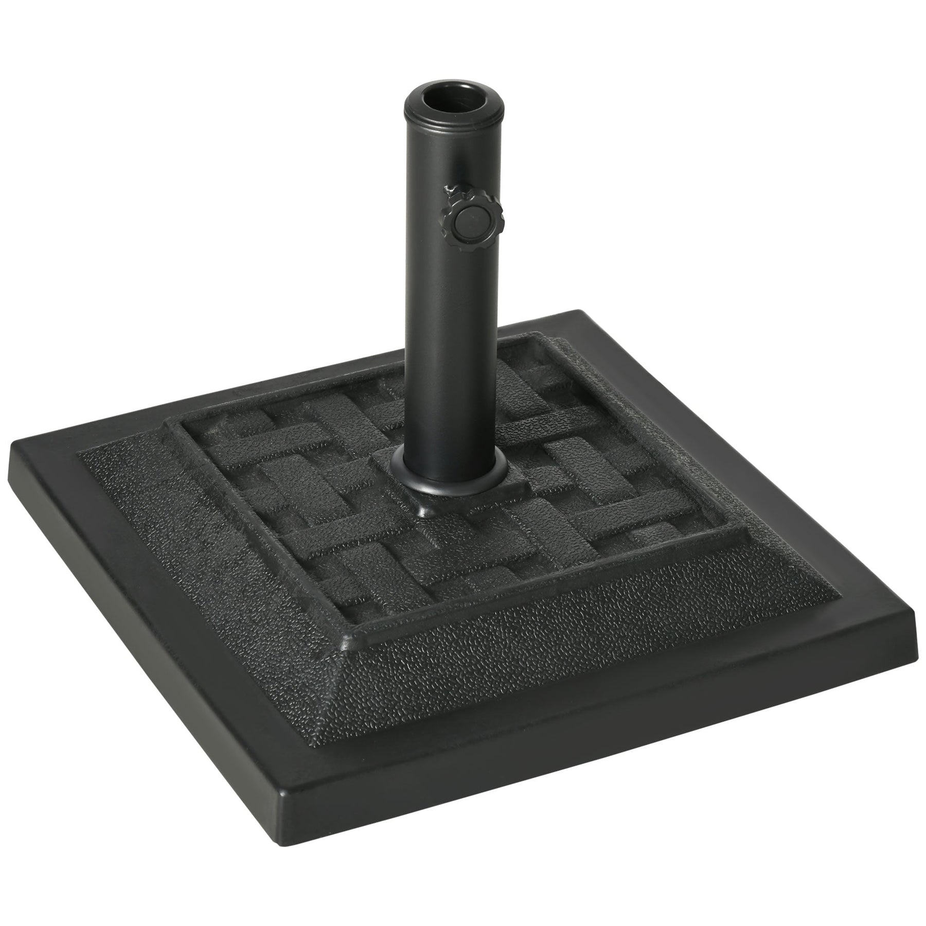 Ensure your umbrella stays steady and secure with the Resin Patio Umbrella Base. Designed to fit umbrellas with pole diameters of 1.3" (3.2 cm), 1.5" (3.8 cm), or 1.9" (4.8 cm), this base includes a hand-tightening rotary knob that makes securing your umbrella easy and quick. Simply slide the umbrella pole into the base, turn the knob, and it’s ready to go. The bottom part is crafted from durable resin, which prevents chipping, peeling, and aging, ensuring long-lasting use. The steel pole with a powder coating provides additional strength and stability, making this umbrella base ideal for withstanding outdoor elements. Its elegant woven pattern offers a decorative and high-end touch, elevating the look of your patio, garden, or outdoor living area. Whether you're enjoying a sunny day or seeking shade, this umbrella base is designed for both functionality and style.