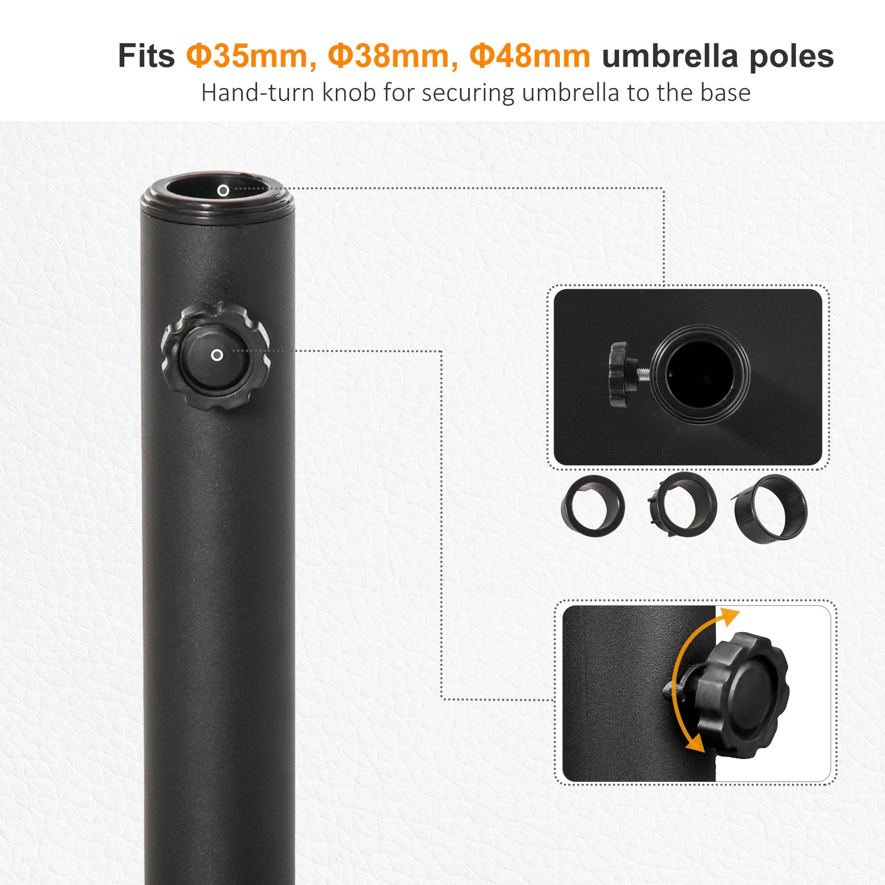 Enhance the stability and style of your patio umbrella with this Patio Umbrella Base, crafted from durable cement and metal for long-lasting performance in all weather conditions. This base features an elegant black metal cover and a heavy-duty cement base that provides superior support, preventing your umbrella from tipping over in windy conditions. The adjustable tightening knob allows you to secure umbrella poles with a diameter of Φ1.4"/Φ1.5"/Φ2.0", making it universally compatible with a variety of umbrellas. Ideal for creating a safe and stylish outdoor experience, this sturdy umbrella base is an essential accessory for any patio, garden, or balcony.