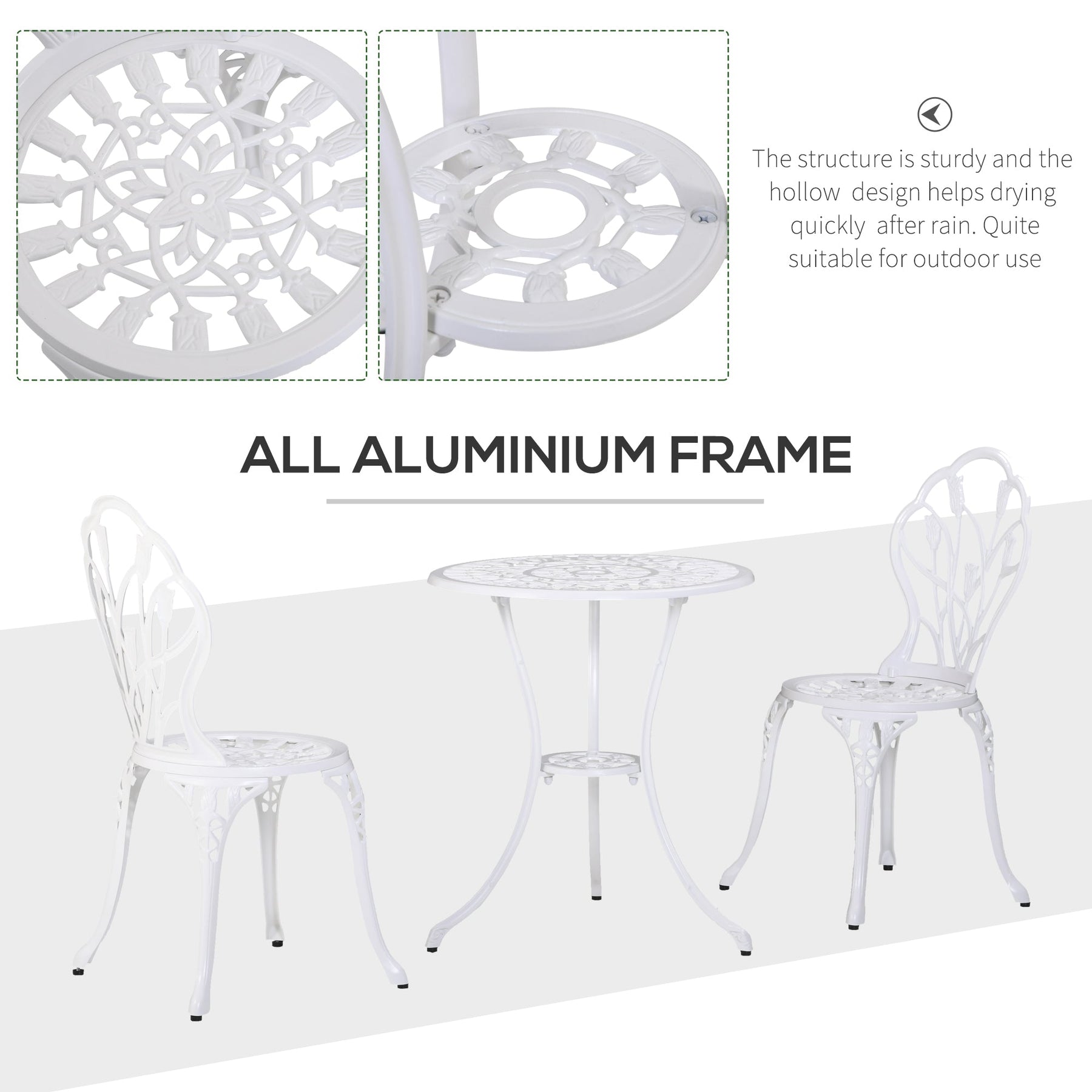 Upgrade your outdoor space with this stylish and functional Garden Table Set, perfect for casual dining, coffee breaks, or relaxing conversations. The set includes a round bistro table and two matching chairs, making it an ideal choice for balconies, patios, gardens, or small outdoor spaces. Designed with a built-in umbrella hole, the table accommodates umbrellas with a pole diameter of Φ1.75" or Φ1.5", providing the option for shade on sunny days. The sturdy aluminum frame ensures durability, weather resistance, and long-lasting use. Additionally, the slightly adjustable foot pads help stabilize the set on uneven ground while protecting floors from scratches. Whether enjoying breakfast, afternoon tea, or a friendly chat, this elegant and practical bistro patio set brings comfort and charm to any outdoor setting.