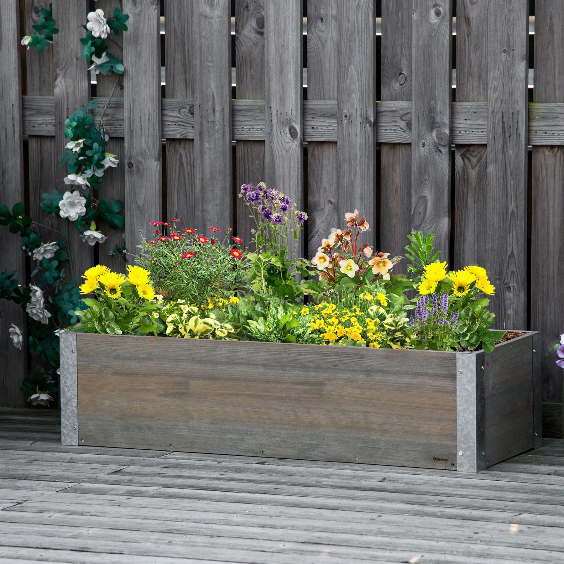 Outsunny 38"x12" Raised Wooden Planter: Elevated Garden Bed for Backyard Veggies/Herbs, Light Grey