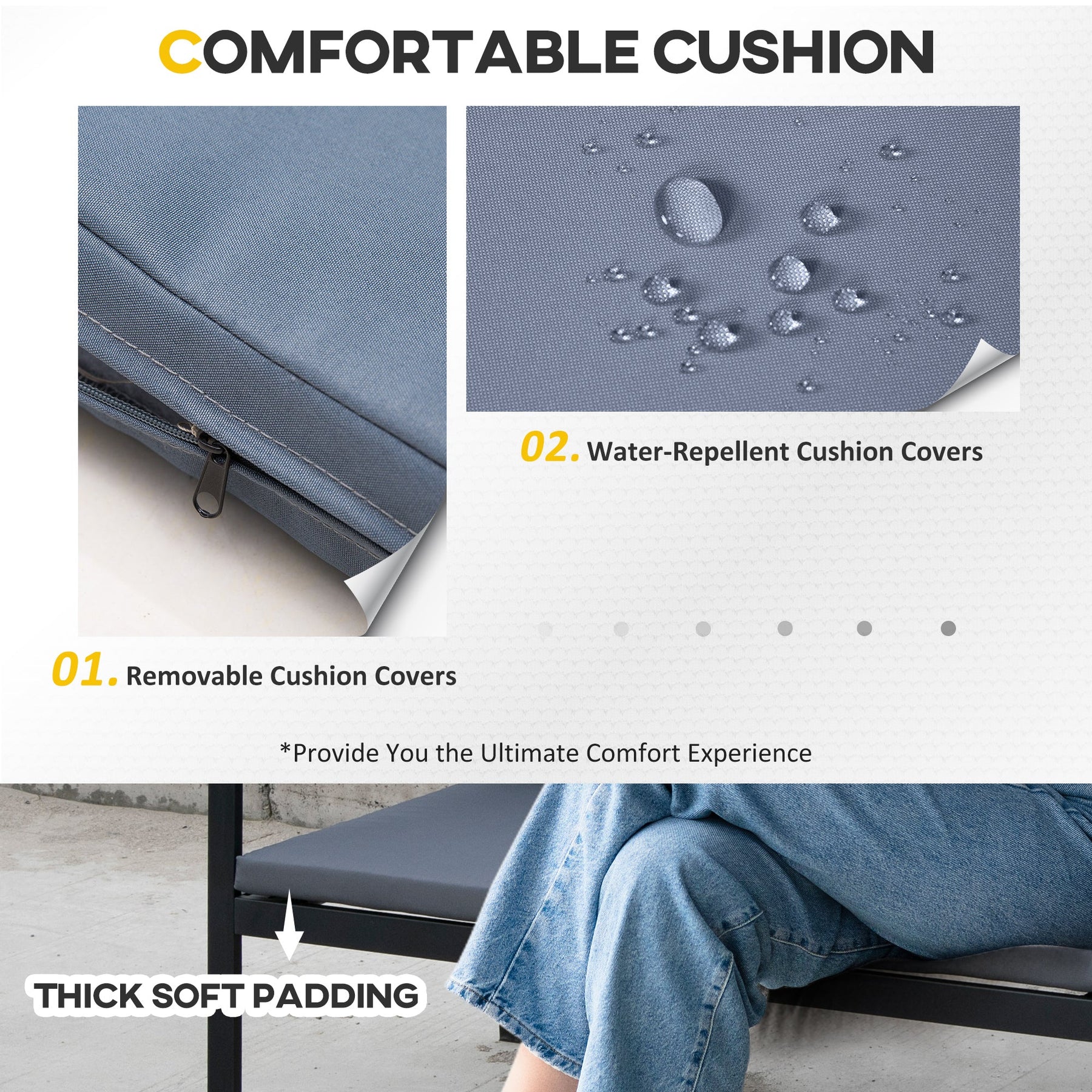 Cushioned seats with removable, washable covers for easy maintenance.