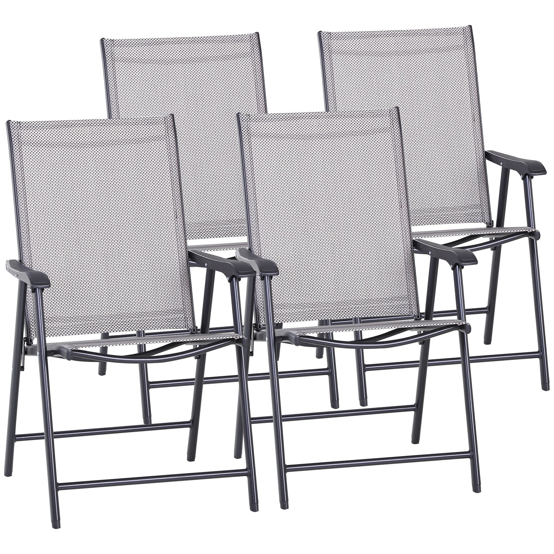 Upgrade your outdoor seating with this 4-piece portable lawn chair set, designed for both relaxation and convenience. Whether you're enjoying a quiet evening on the patio, gathering with family in the backyard, or heading to the beach or campsite, these metal patio chairs offer a durable and stylish seating solution. The foldable design makes storage and transportation a breeze, allowing you to save space when not in use. Crafted with a sturdy powder-coated steel frame, each chair supports up to 242.5 lbs, ensuring long-term durability. The breathable sling fabric provides excellent comfort by reducing muscle tension and stress, while the high-back design offers extra support for extended sitting. Ideal for patios, decks, gardens, campsites, and more, this set is a perfect blend of functionality and comfort.