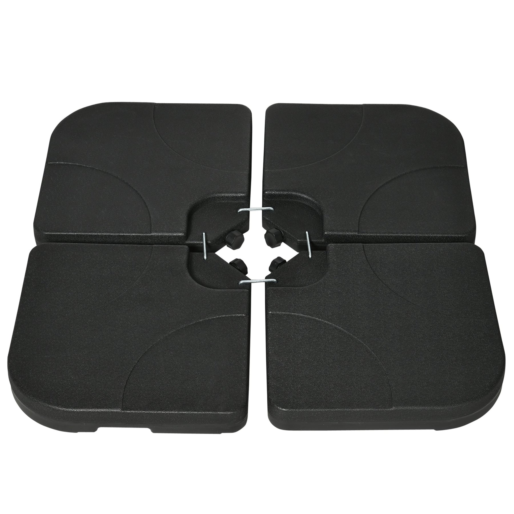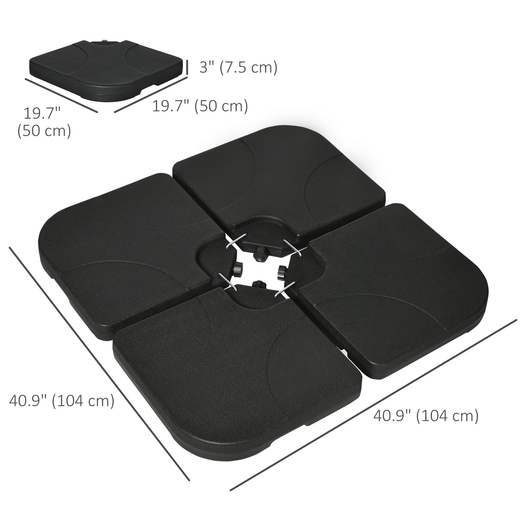 Keep your cantilever umbrella securely in place with this four-piece base designed for patio umbrellas. This umbrella base is ideal for providing stability and ensuring your umbrella stays upright to offer shade on sunny days. When filled with water, the base weighs 60kg, and when filled with sand, it weighs 78kg, offering excellent support for your outdoor parasol. Each base weight features a filling port and screw cap, making it simple to fill and empty for hassle-free use. Crafted from tough and durable HDPE plastic, this umbrella base is built to withstand outdoor elements, ensuring long-lasting performance. It also includes four metal connectors to keep the individual pieces securely connected for added stability. Perfect for use with compatible Outsunny parasols, this umbrella base is an essential addition to your outdoor setup.