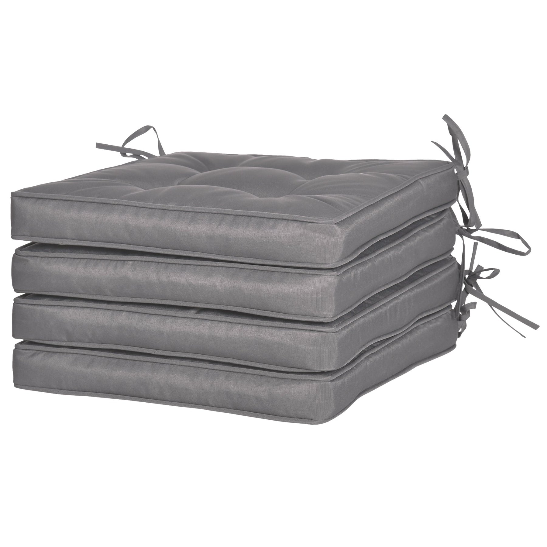 Enhance your outdoor seating experience with these high-quality patio cushions, designed for comfort and durability. The cushions are filled with a unique combination of two types of filling, offering both high resilience and softness to ensure hours of comfortable sitting. Made with a 180gsm polyester cover, these cushions are tough and durable, perfect for both indoor and outdoor use. They are resistant to light stains and splashes of water, making them ideal for outdoor settings. The cushions are equipped with tie fastening straps on the corners, securing them firmly in place, so you won’t have to worry about them slipping off your furniture. Additionally, the tufted design ensures that the filling stays in place, while the piping edging helps maintain their shape and prevents deformation. With a set of four cushions, they are a perfect choice for refreshing your garden furniture and creating a cozy, inviting atmosphere. Make sure to measure your seat size before purchasing to ensure the perfect fit.