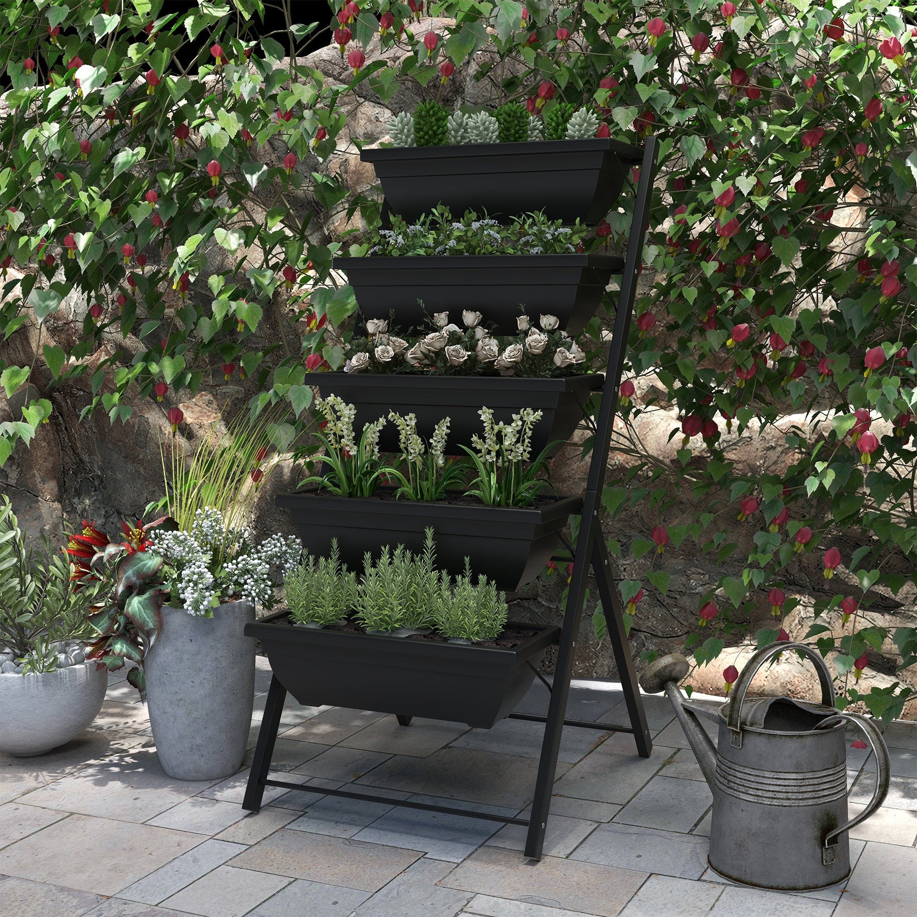 Multi-layer design with 5 outdoor pots for displaying flowers and plants in compact spaces