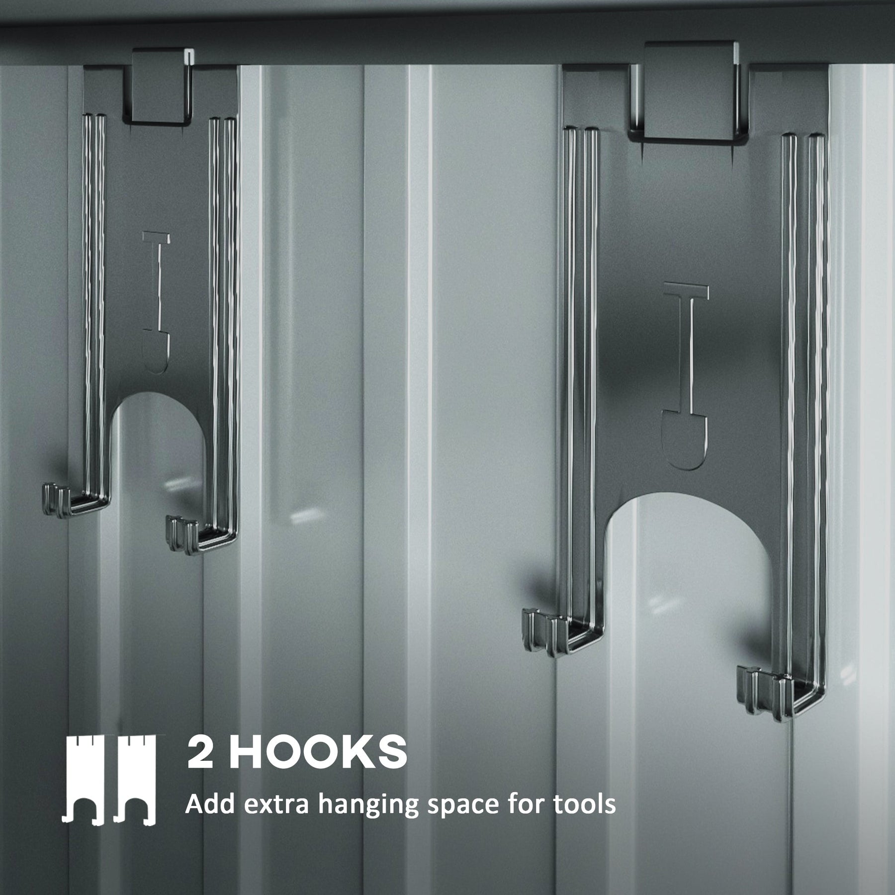 Extra Hooks: Two additional hooks for hanging water pipes, shovels, rakes, and other small tools