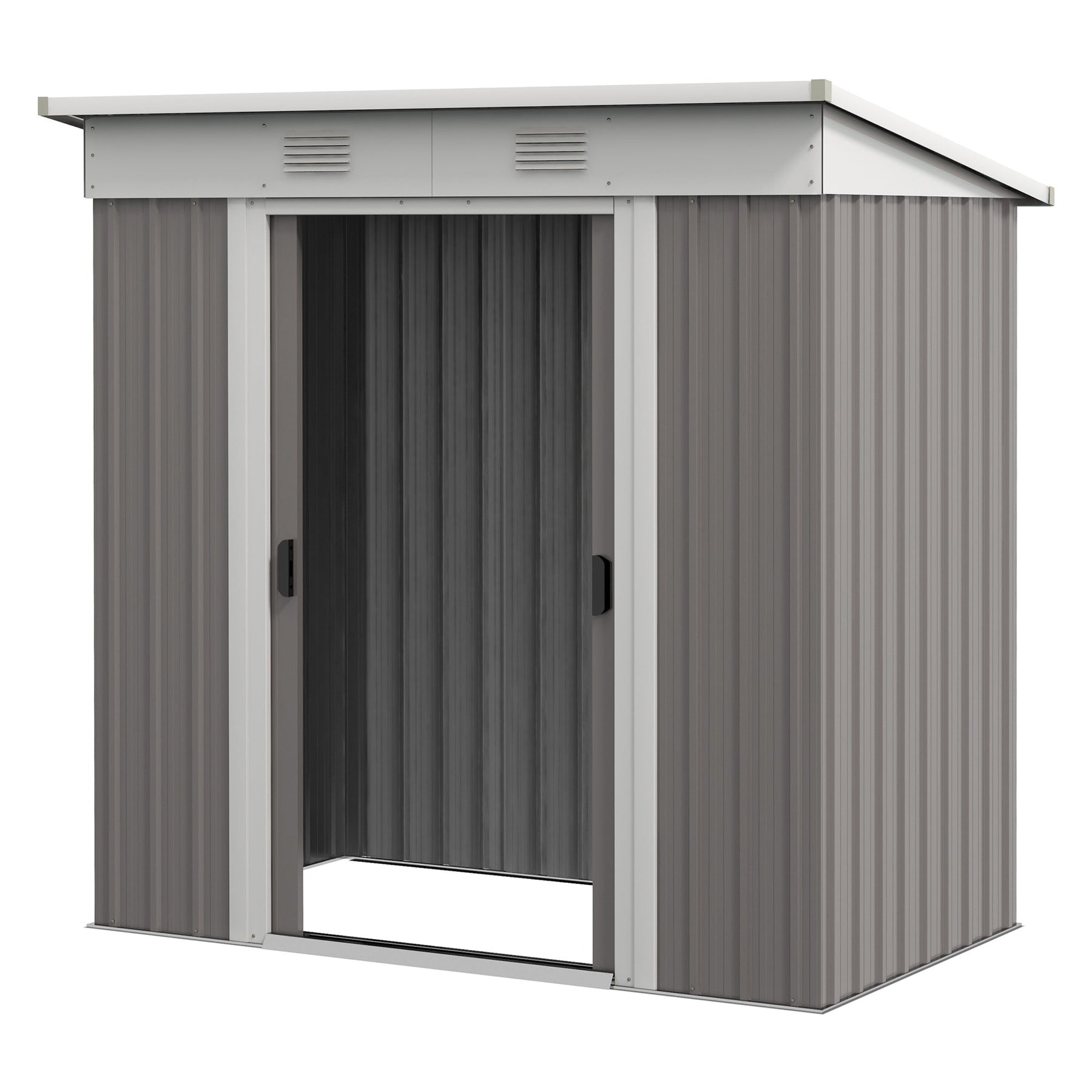 Outsunny 6' x 4' Outdoor Storage Shed, Metal Garden Tool Storage House Organizer with Lockable Sliding Doors and Vents for Backyard Patio Lawn, Light Grey