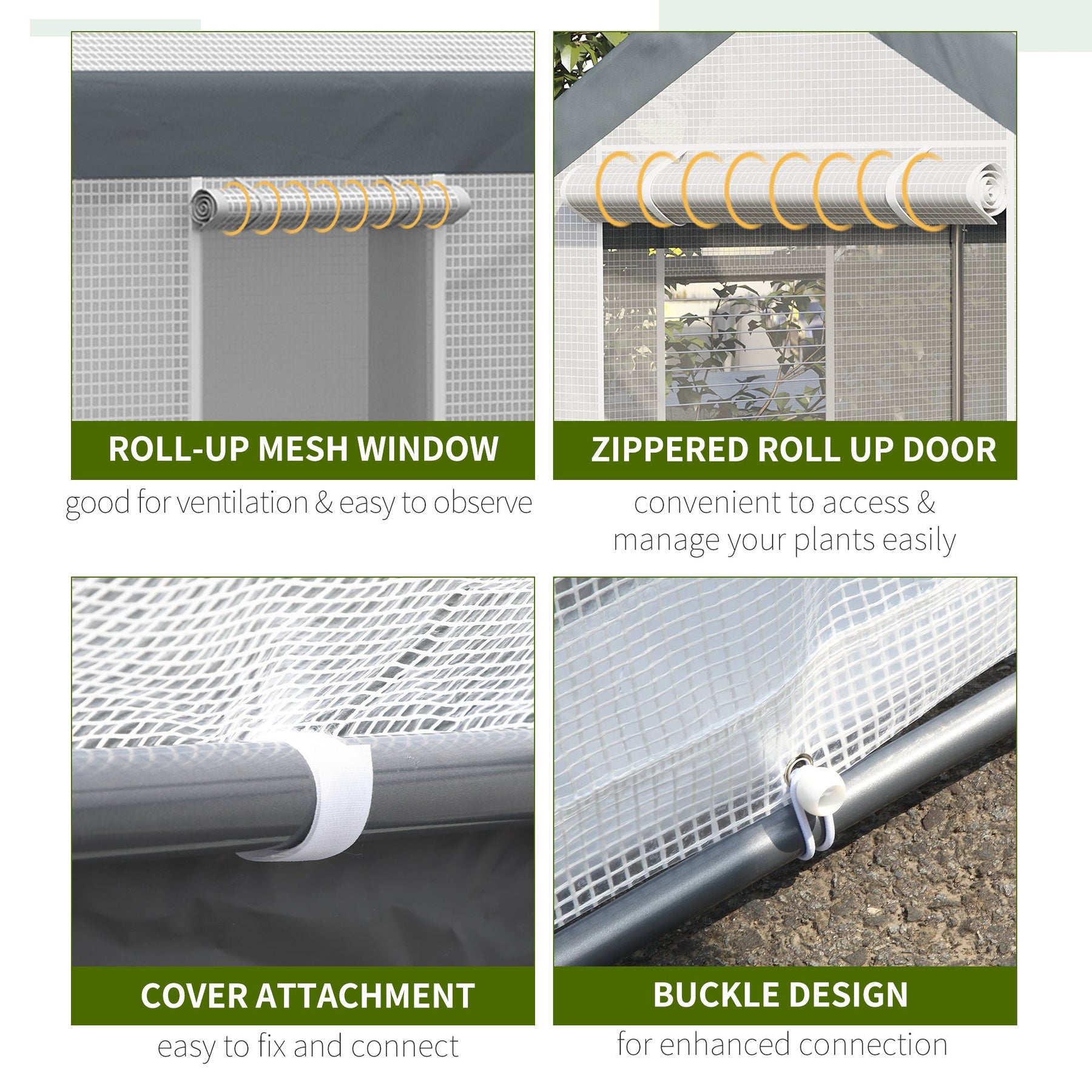 Roll-Up Door: Large zippered door for easy access to your plants.