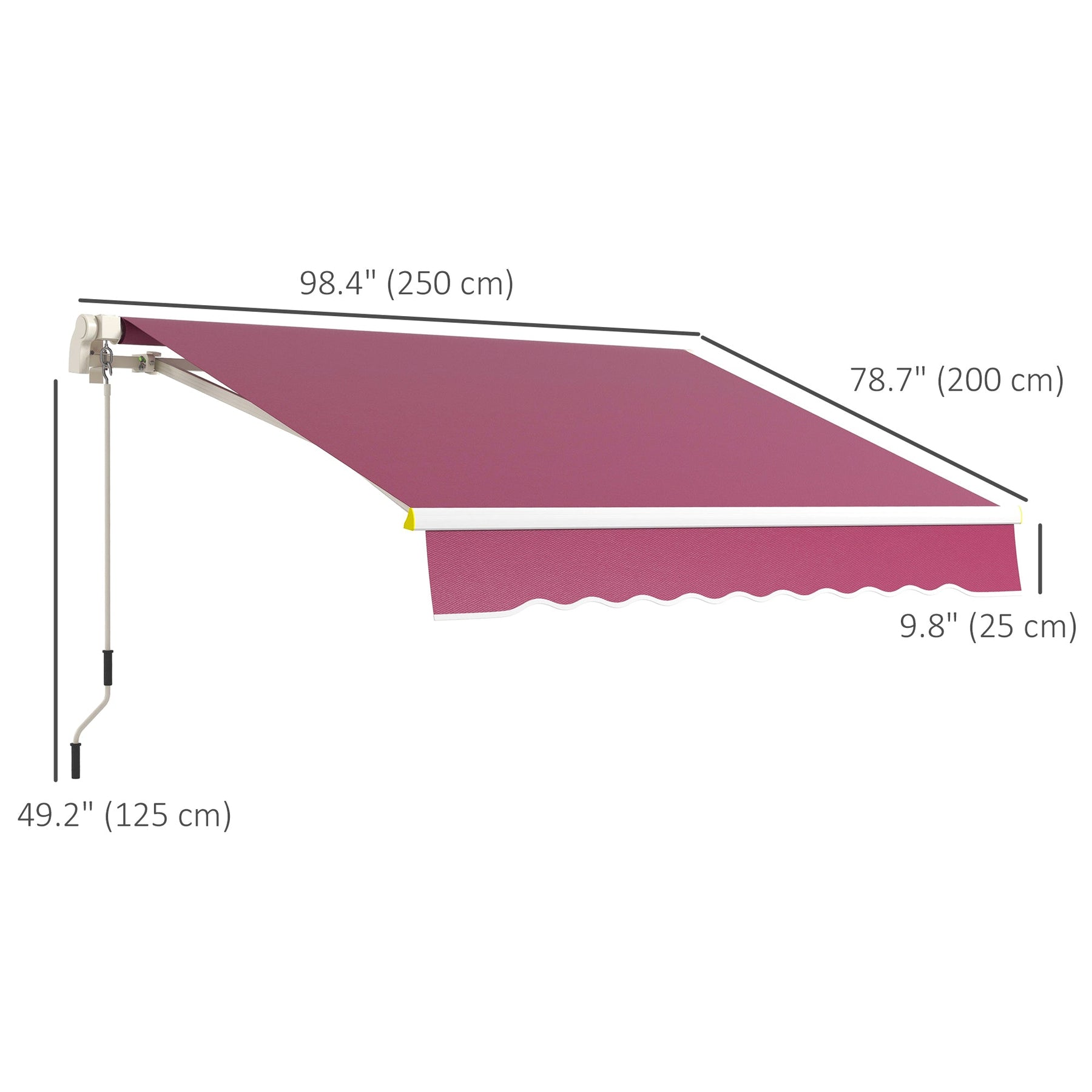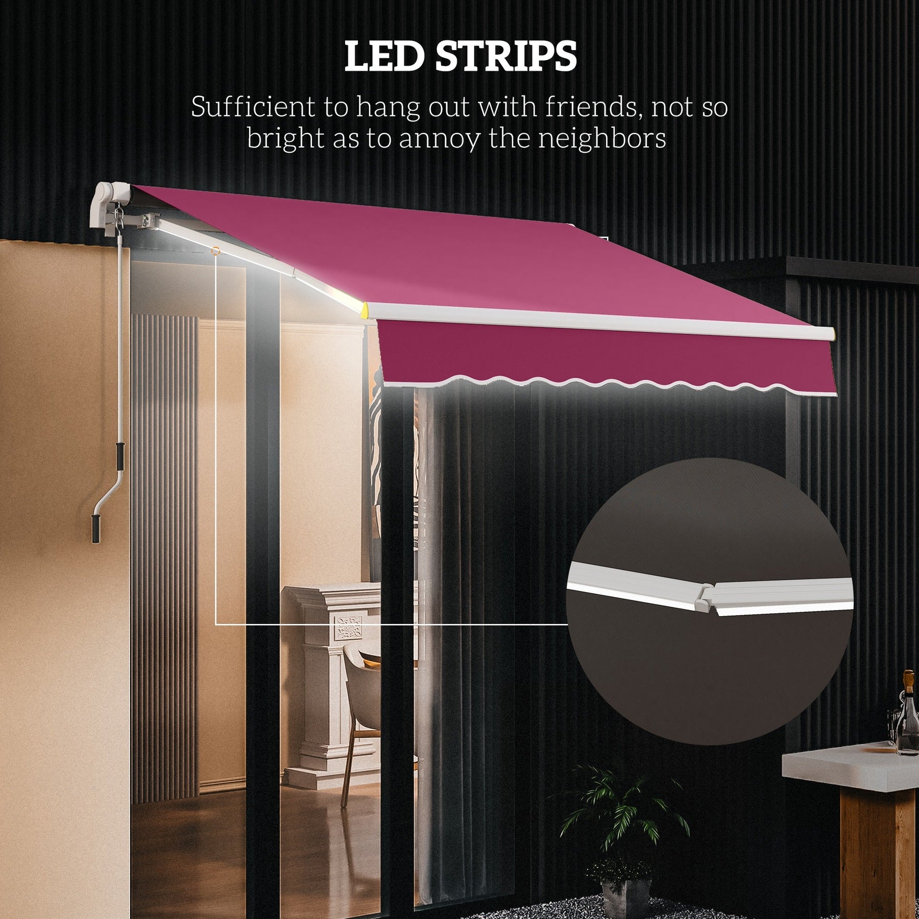 Enhance your outdoor living space with this retractable LED lighted awning, designed for both functionality and style. Ideal for patios, balconies, or garden doors, it features built-in LED lights on the arms, offering ambient illumination for nighttime enjoyment while doubling as a decorative accent. The adjustable angle ranging from 45° to 85° allows you to customize the shading to block direct sunlight and glare—perfect for relaxing outdoors at any time of day. Crafted from PA-coated 280gsm fabric, the awning provides UV40+ protection and is resistant to water and fading, ensuring long-term use and lasting color. The frame combines sturdy metal tubes and aluminum parts to offer durability against outdoor elements like rain and wind. This deck awning provides a generous shaded area of 98.4" wide by 78.7" deep and is suitable for walls between 8.2 to 11.5 feet high. Be sure to leave at least 11.8" of clearance when mounting above doors or windows. Whether you're hosting a barbecue, reading a book, or simply enjoying the breeze, this awning creates a cool, comfortable retreat right outside your door.