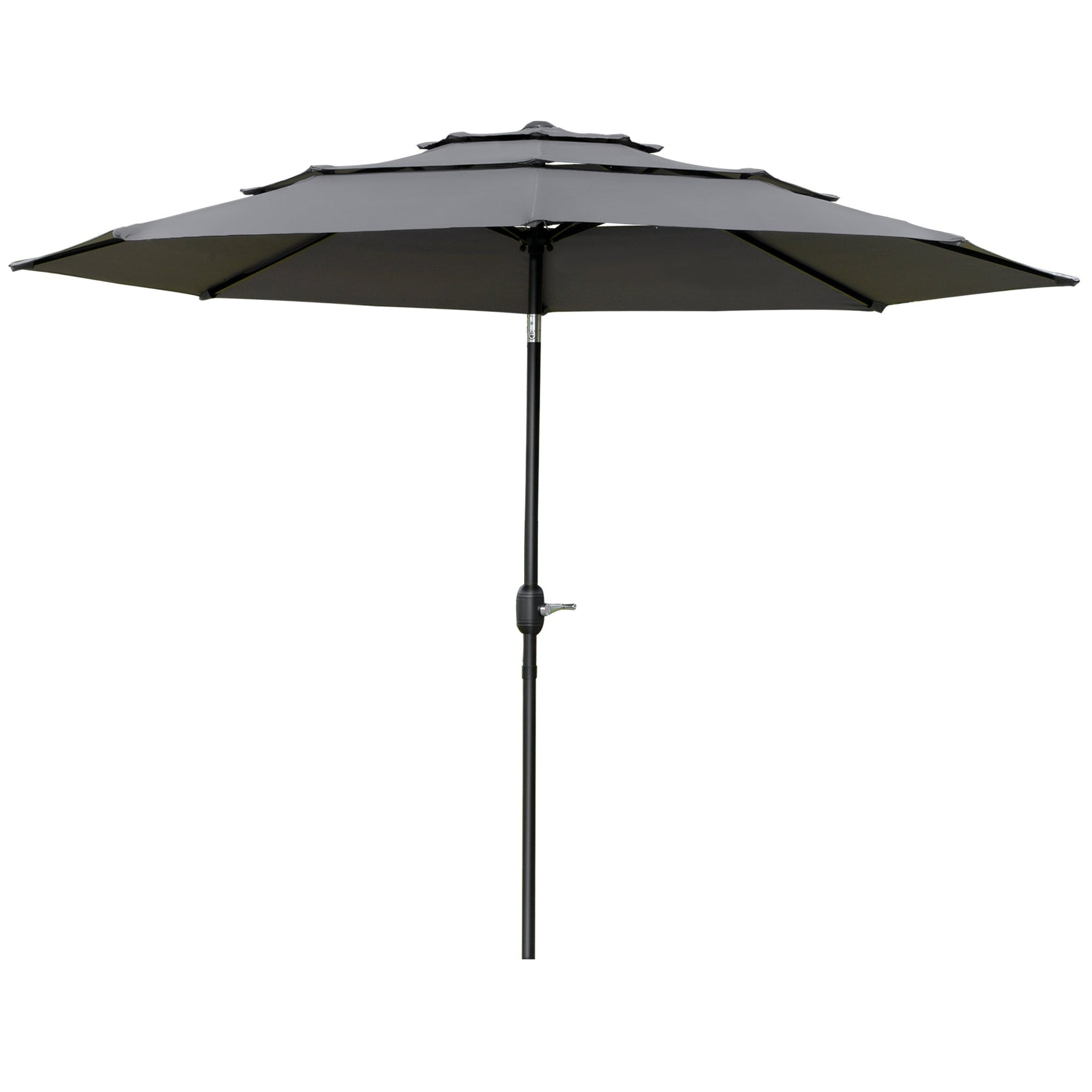 Outsunny 9FT 3-Tier Patio Umbrella: Outdoor Market Umbrella with Crank, Push Button Tilt for Deck & Lawn, Light Grey