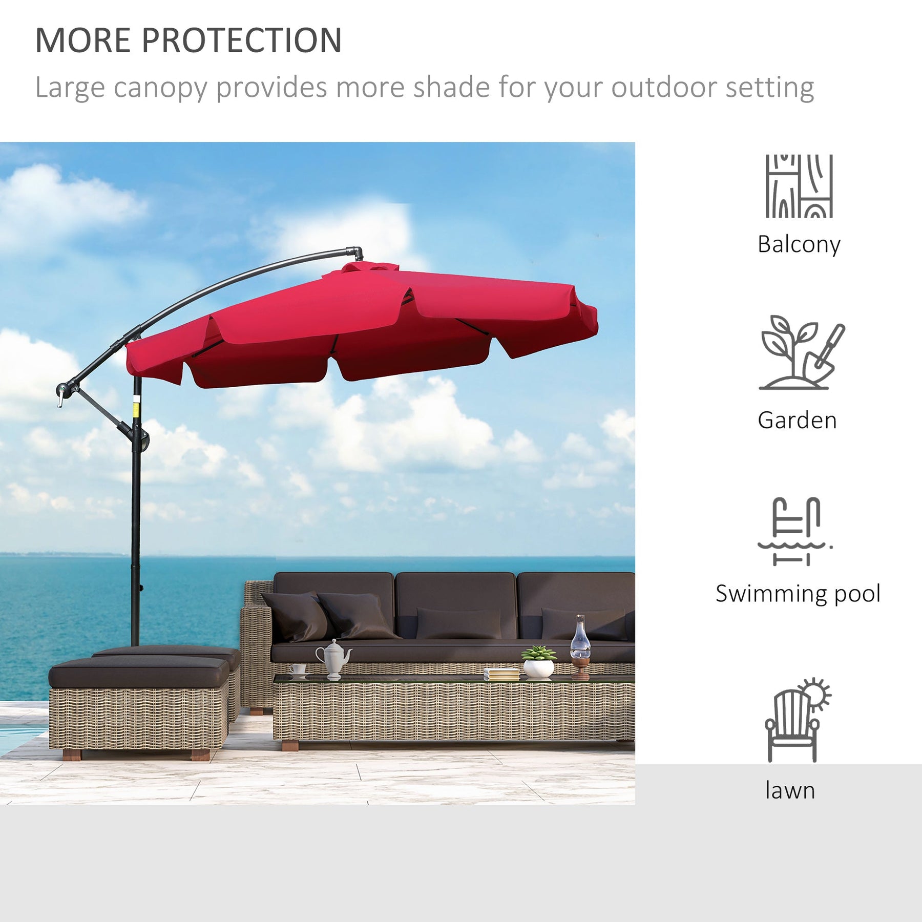The Offset Cantilever Umbrella is the ideal solution for creating ample shade over large outdoor furniture such as sectionals, pool lounge chairs, and patio dining sets, particularly when no hole is available to mount a traditional umbrella. With a robust steel frame and 8 ribs for enhanced stability, this umbrella can stand firmly in place, even on windier days. The crank handle allows for quick and effortless opening and closing, making it simple to store when not in use. The included canopy vent helps with air circulation, preventing the umbrella canopy from being lifted by the wind. Designed for easy operation and practicality, this umbrella is a great addition to any yard, garden, or poolside area.