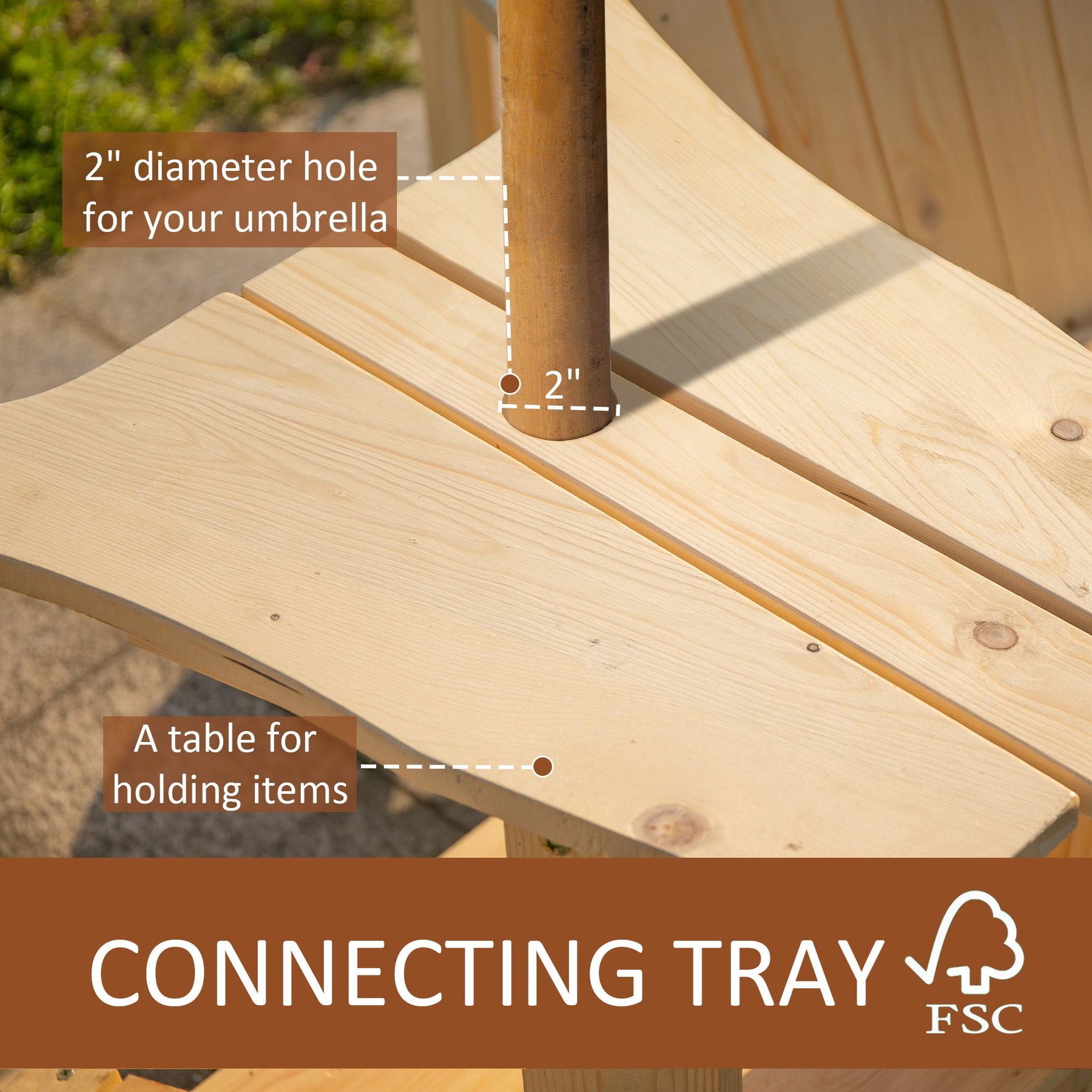 Umbrella Hole: Includes a center hole for inserting an umbrella (inner diameter: 2") to provide shade and protection from the sun or rain.