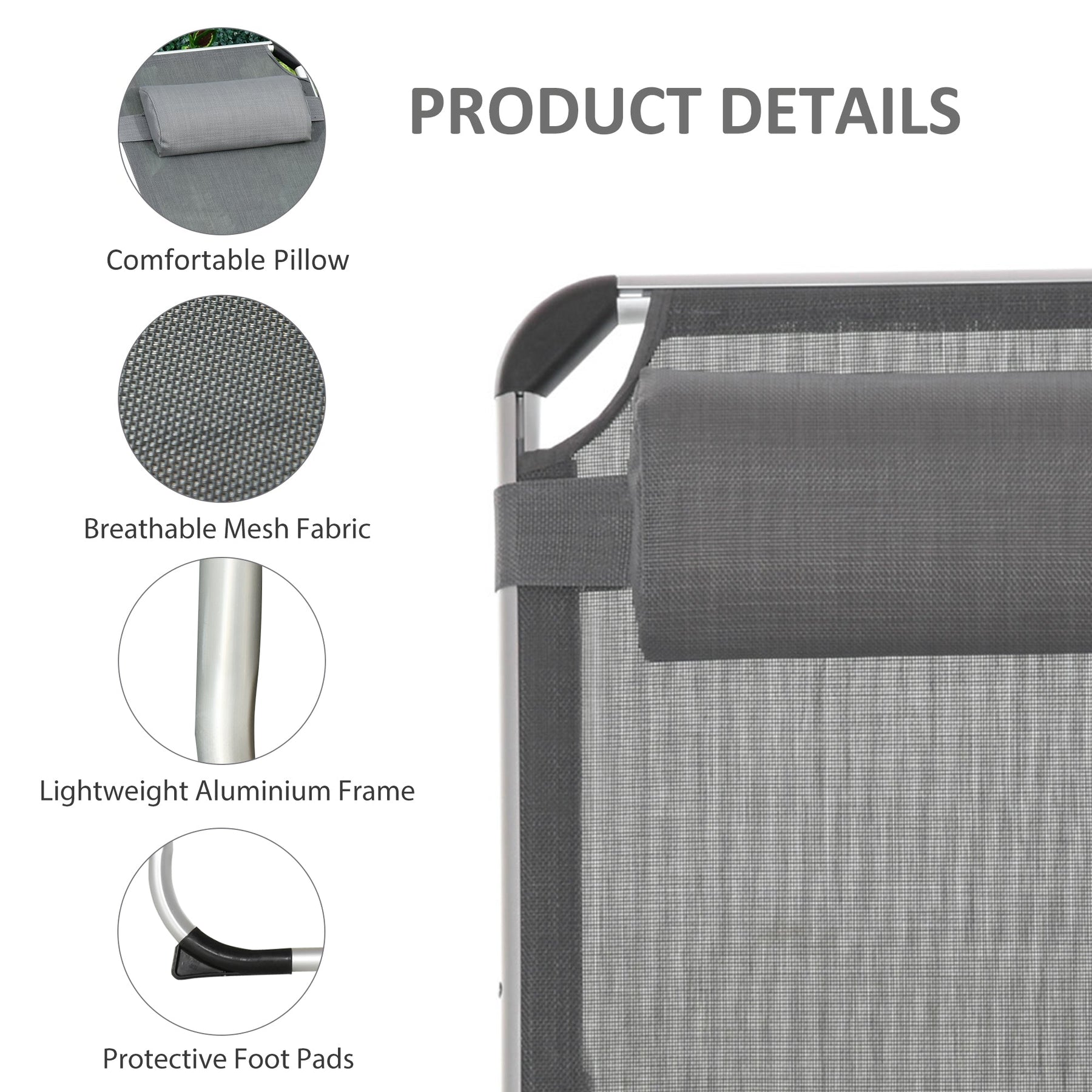 • Adjustable Backrest: Five reclining positions to ensure the most comfortable lounging experience.