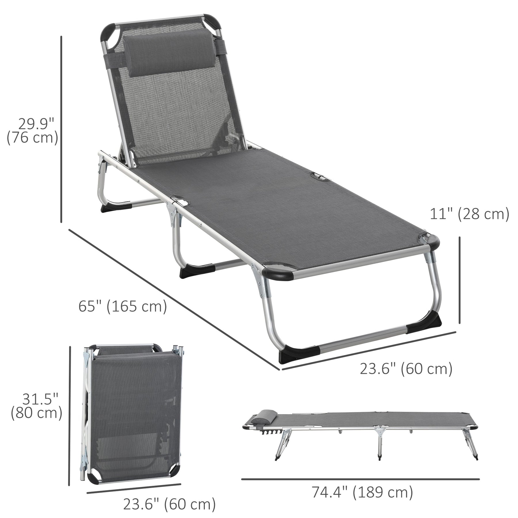 Unwind in style and comfort with our Adjustable Folding Lounge Chair. Equipped with five reclining angles, this lounge chair is perfect for finding your ideal comfort level, whether you're relaxing by the pool or enjoying a leisurely afternoon in the garden. The chair’s folding design ensures portability and easy storage, making it a great choice for weekend trips or beach days. The breathable mesh fabric provides a cool, comfortable seating experience, while the removable pillow adds extra relaxation. Constructed with a durable powder-coated aluminum frame, this lounge chair is designed to offer lasting support and stability. It requires no assembly—just fold it out and enjoy!