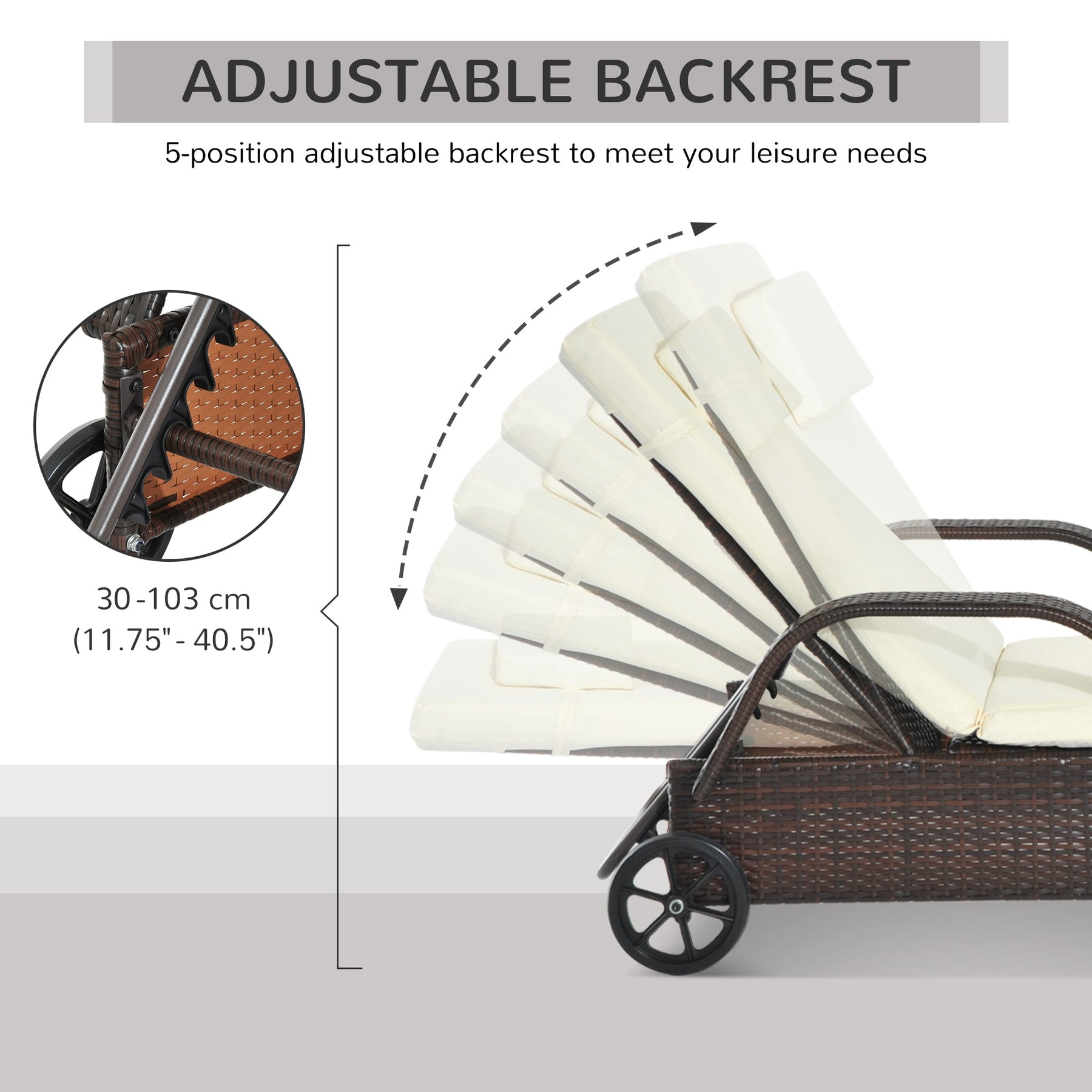 Relax in ultimate comfort with this durable outdoor chaise lounge, designed to withstand the elements and provide long-lasting comfort. Crafted from a strong steel frame and UV-protected handwoven PE rattan, this chaise lounge is tough enough to endure rain, wind, and sun exposure, making it perfect for year-round use. The chic wicker design adds a touch of elegance to your outdoor space, while the thick padded cushion ensures you experience complete relaxation. With a 5-position adjustable backrest, you can customize the reclining angle to suit your needs. Ideal for use in gardens, patios, poolside, or porches, this versatile lounge chair is designed for both outdoor and indoor enjoyment. Plus, it features smooth-rolling wheels for easy mobility, allowing you to move it with ease.