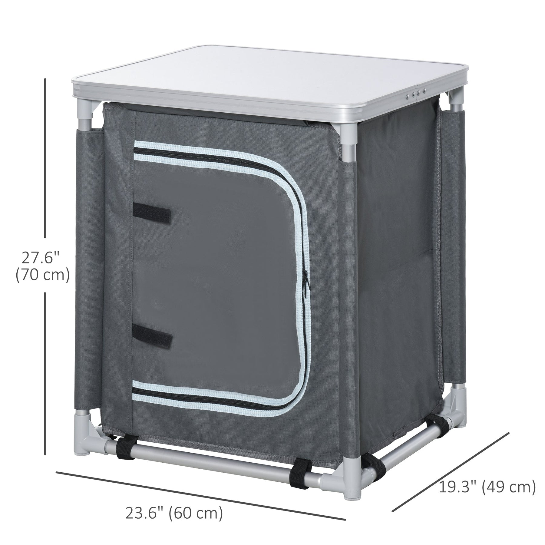 Camping Kitchen Table: Perfect for outdoor trips, with dimensions of 23.6" W x 19.3" D x 27.6" H (60 x 49 x 70 cm) and shelf dimensions of 20.5" W x 16.5" D x 11.8" H (52 x 42 x 30 cm).