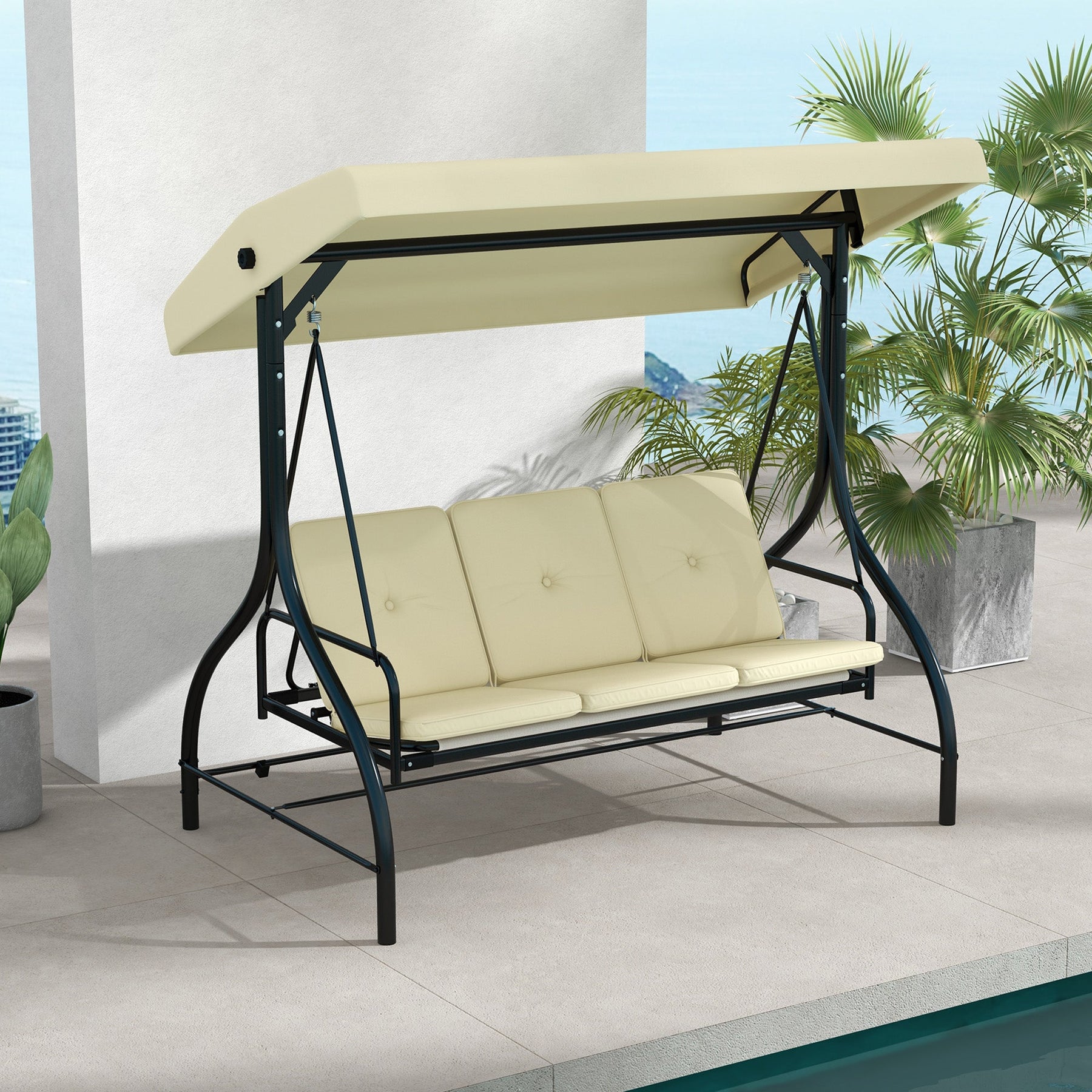 Relax in style and comfort with this convertible 3-seat patio swing. Designed to offer both a sitting swing and day bed, it provides ultimate versatility for outdoor relaxation. The convertible day bed option allows you to stretch out and take a summer snooze, while the swing design offers an enjoyable, gentle motion with space for up to three people. Featuring a tilting sun shade canopy, this swing provides optimal protection from the sun’s harsh UV rays, allowing you to adjust the canopy to block sunlight from any angle. Built with a durable steel frame, it supports up to 528 lbs, ensuring sturdy support for all users. The weather-resistant polyester fabric and powder-coated finish guarantee long-lasting use and easy maintenance. Whether you’re lounging alone or enjoying company, this patio swing is the perfect addition to your outdoor space.