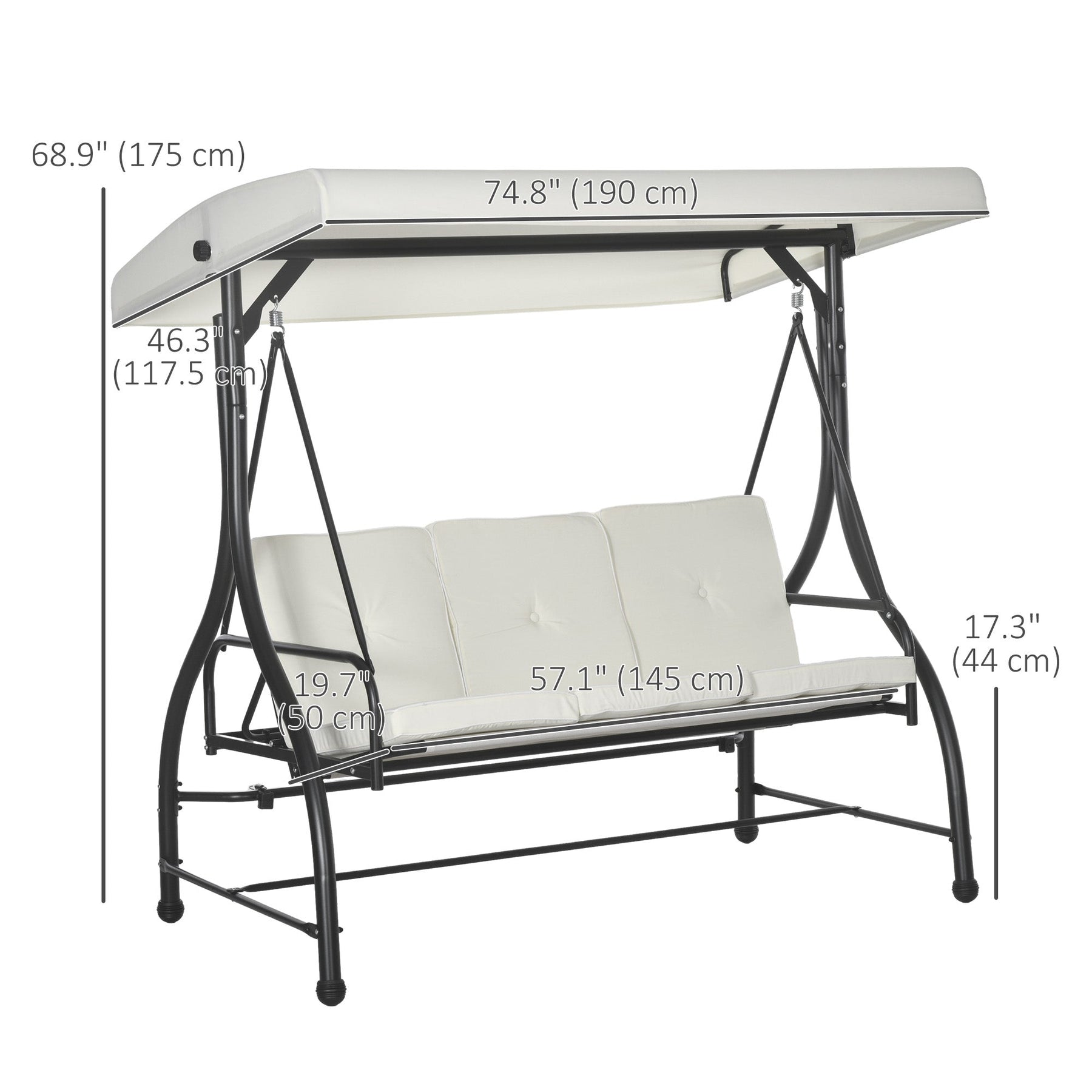 3-Seat Swing: Designed for three people, with individual seats for comfortable group enjoyment.