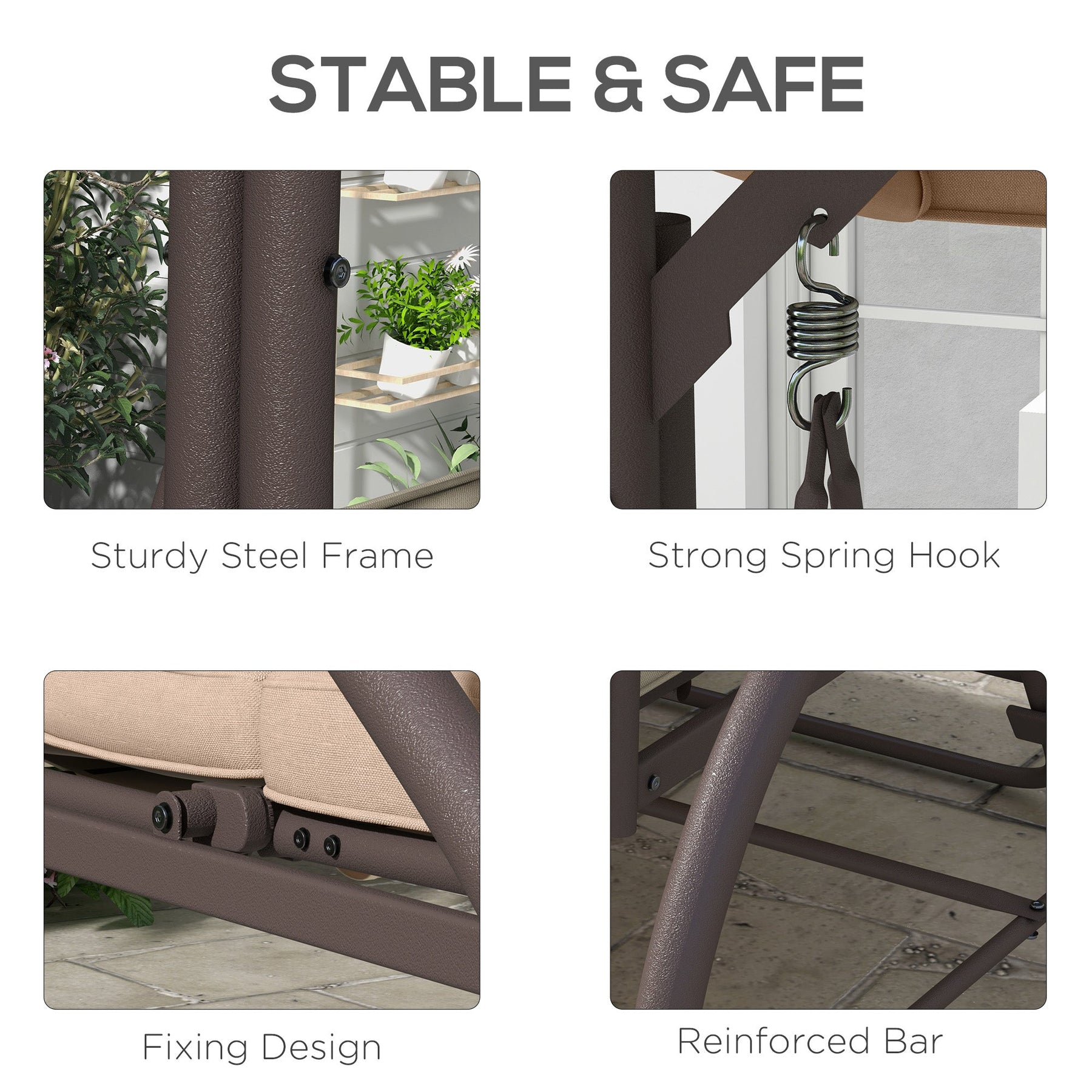 Outsunny Convertible Patio Swing Bed with Canopy and Cushions, 3 Seater Porch Swing for Outdoor, Backyard, Garden, Khaki