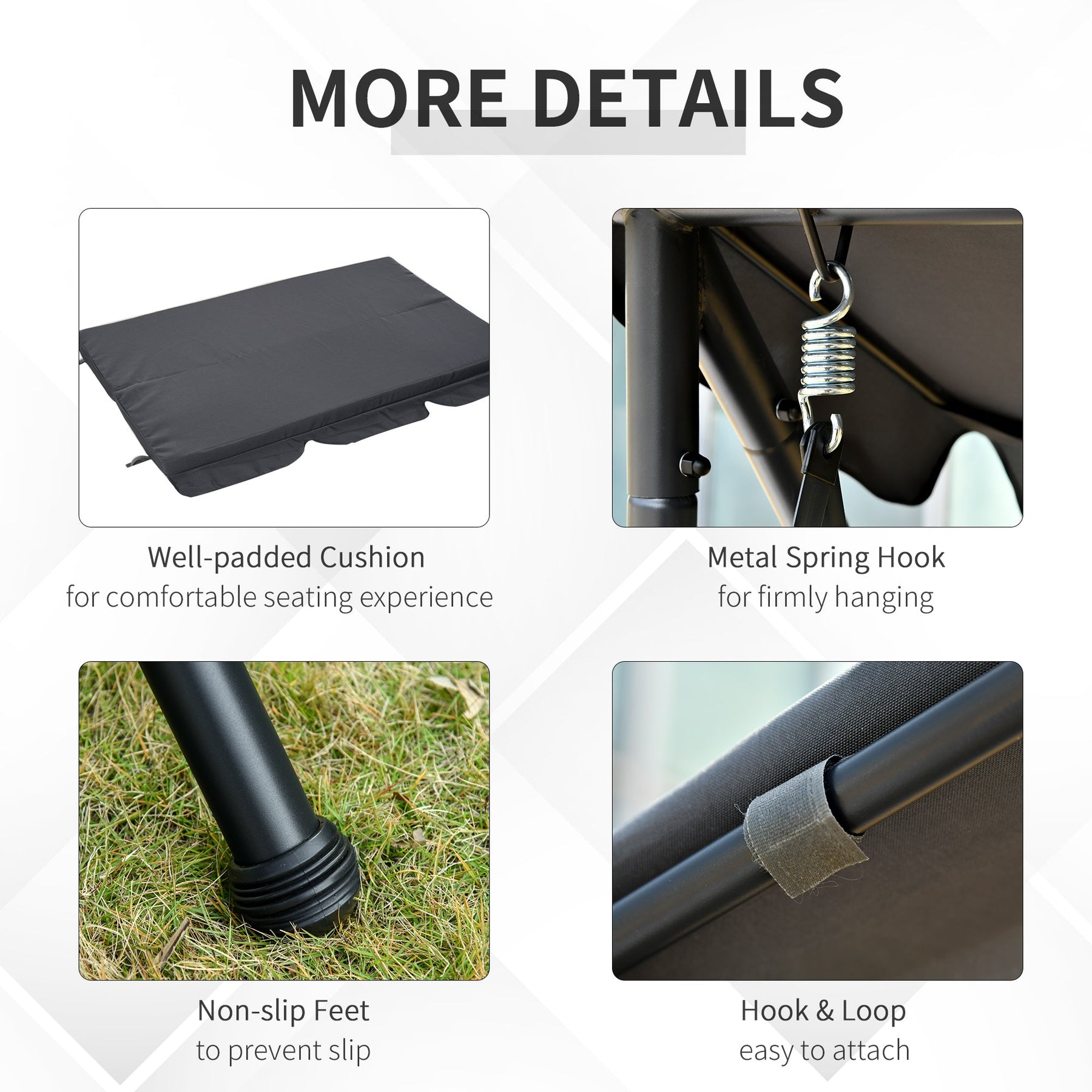 Enjoy ultimate relaxation with this versatile 3-seat patio swing, designed to quickly convert into a comfortable patio swing bed. Ideal for outdoor spaces such as gardens, backyards, patios, lawns, and decks, this swing allows you to sit and swing or lie down and relax in bed mode. The canopy top is made from breathable polyester, providing excellent sunshade and comfort, even on the warmest days. The angle of the canopy is adjustable to suit your specific needs, whether you're looking for more shade or a better view of the sky. Equipped with a soft, washable padded seat and backrest, along with included pillows, this swing offers a luxurious seating experience. Built with a robust steel frame and powder-coated finish, it is stable and durable for long-term outdoor use.