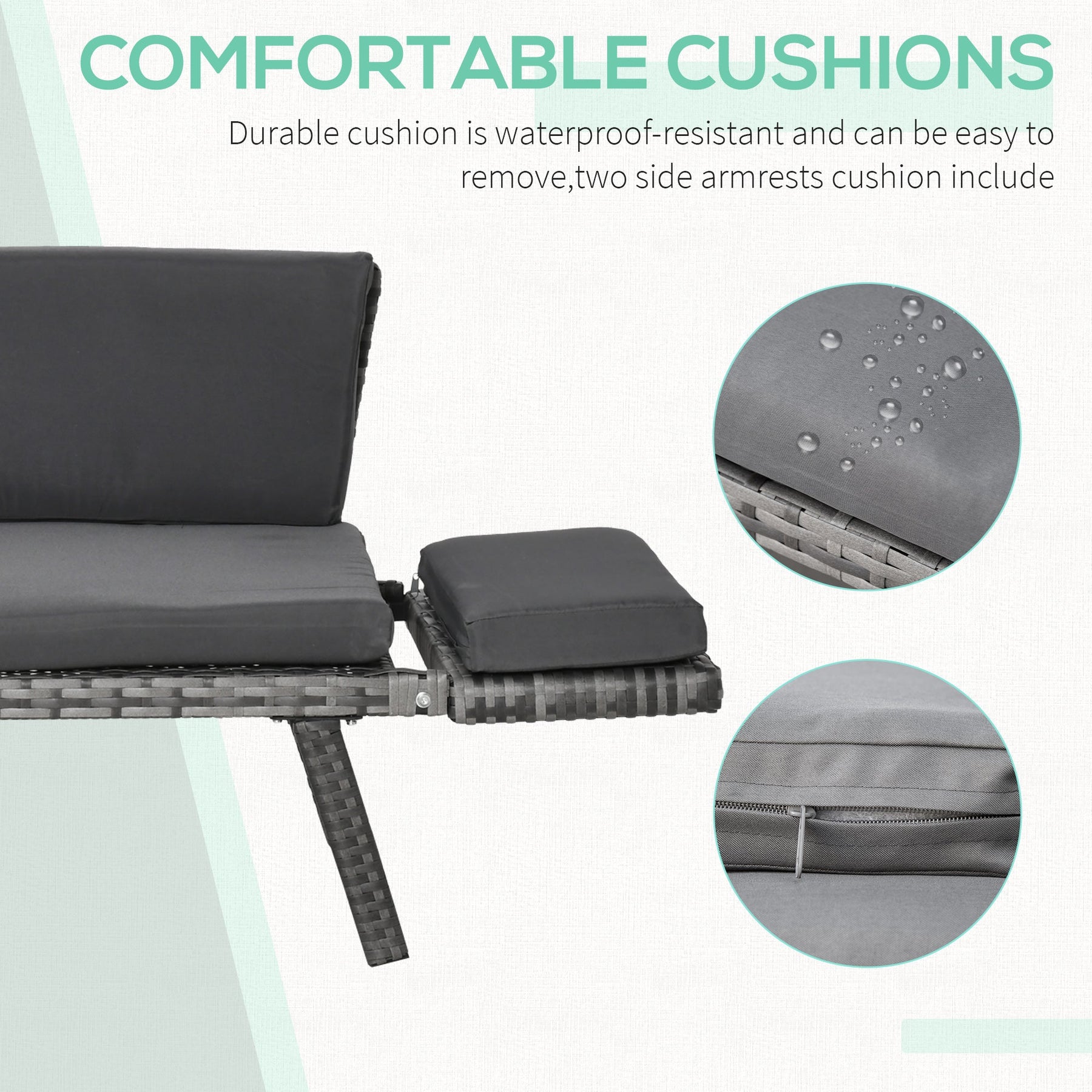 Enhance your outdoor living space with this versatile outdoor rattan sofa. Designed to fit perfectly in smaller spaces like balconies, patios, dorm rooms, or apartments, this sectional sofa offers both comfort and functionality. Crafted with a steel frame and wrapped in all-hand woven PE rattan, it provides a sturdy, weather-resistant structure that is easy to clean and resistant to UV rays and light water damage. The thick padded cushions and backrest ensure a soft and supportive seating experience, making it ideal for lounging, reading, or socializing. The 2-in-1 convertible feature allows the sofa to quickly transform into a bed, providing an extra sleeping space for guests or a comfortable spot for a nap.