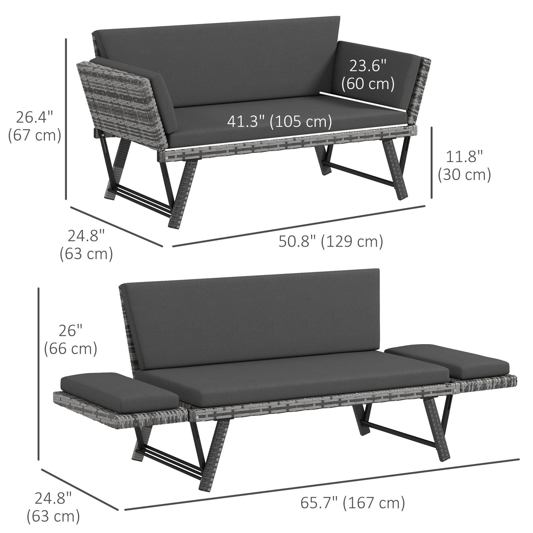 This versatile Outdoor Rattan Sofa is the perfect addition to your indoor or outdoor spaces. Whether you're lounging in the garden, relaxing by the poolside, or looking to maximize smaller spaces like dorm rooms or apartments, this sectional sofa provides ultimate comfort and style. Built with a durable steel frame and powder-coated finish, it is wrapped in handwoven PE rattan, making it both sturdy and resistant to UV rays and light water damage. The thick, padded cushions on the seat and back provide a soft yet supportive seating experience, ensuring you can relax for hours. With a 2-in-1 design, this sofa quickly converts from a couch into a bed, ideal for those unexpected guests or a cozy nap.