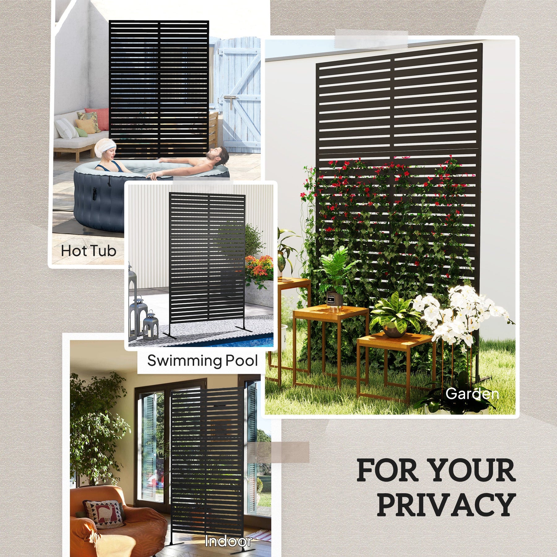Create a more intimate and private retreat in your outdoor space with the Outsunny Decorative Privacy Panel. Designed to segment your yard effortlessly, this panel provides an instant landscaping accent while offering functional space division. The hollow slats are perfect for supporting climbing plants like ivy or vines, allowing you to cultivate beautiful greenery that enhances the overall aesthetic of your outdoor area. Constructed from solid steel with a protective paint finish, this privacy screen is built to endure outdoor elements, offering long-lasting durability and protection from rust and water damage. Easy to install with expansion screws, it ensures a stable, reliable divider for your outdoor space, providing both privacy and style.