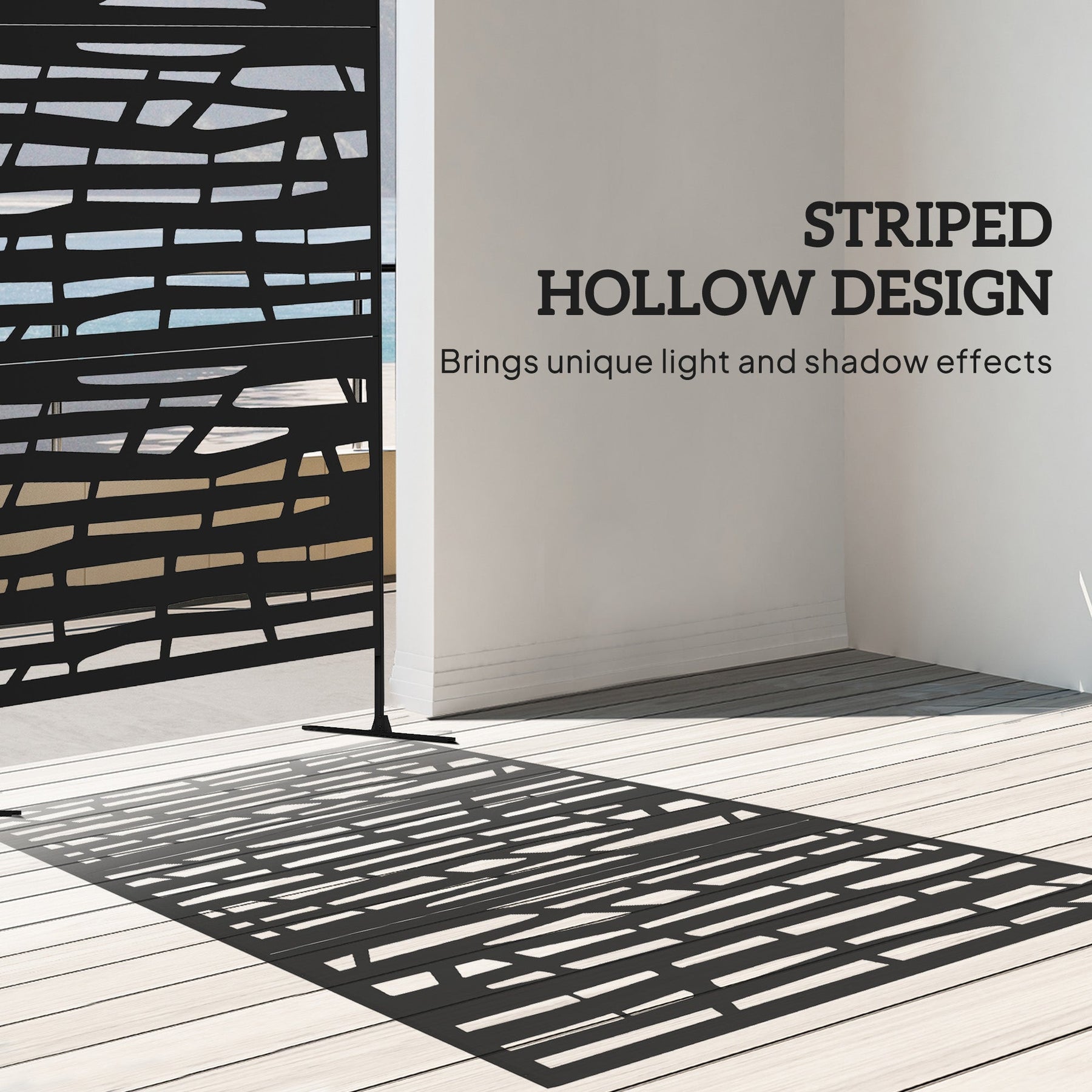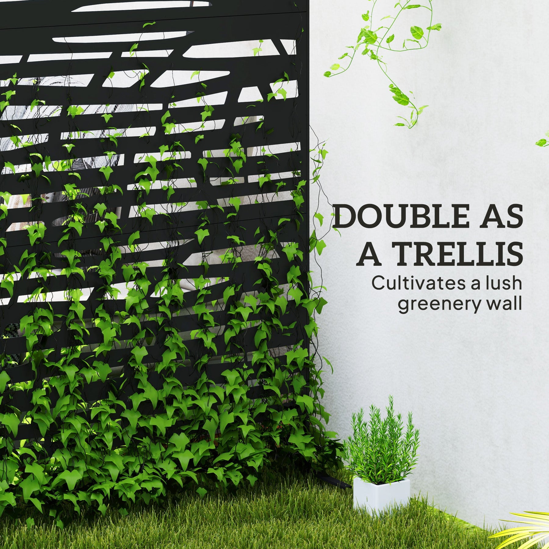 Enhance your outdoor space with the Outsunny Decorative Privacy Panel, a stylish and functional solution for dividing large yards or creating a more private retreat. Featuring a unique striped cut-out design, this panel adds a modern aesthetic while also serving as an excellent trellis for climbing plants like ivy or vines. Made from solid steel with a protective paint finish, this privacy screen is built to withstand outdoor elements, offering durability against rust and water damage. With easy installation using expansion screws for secure placement, this panel provides a stable and reliable way to segment your outdoor area while ensuring lasting privacy and peace of mind.