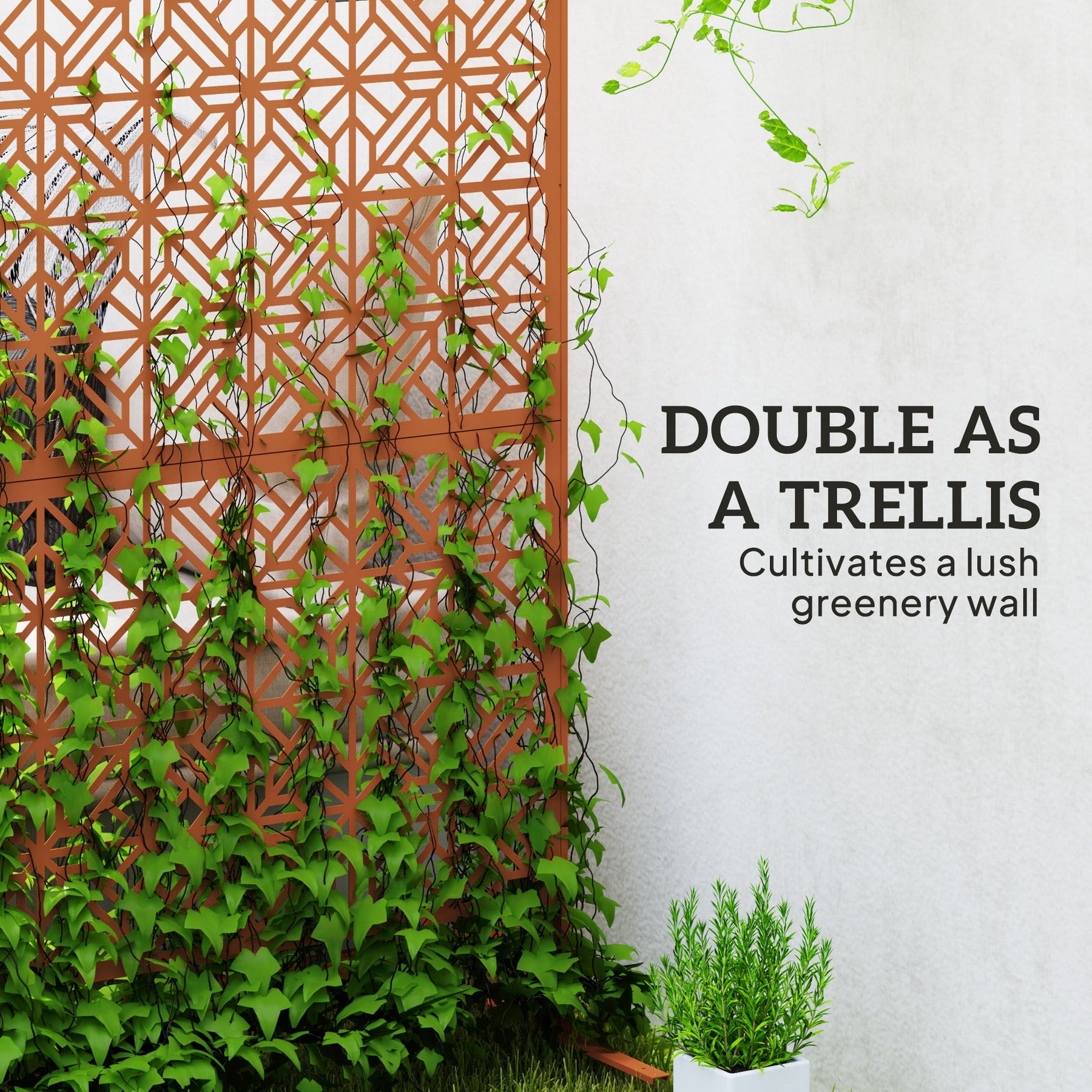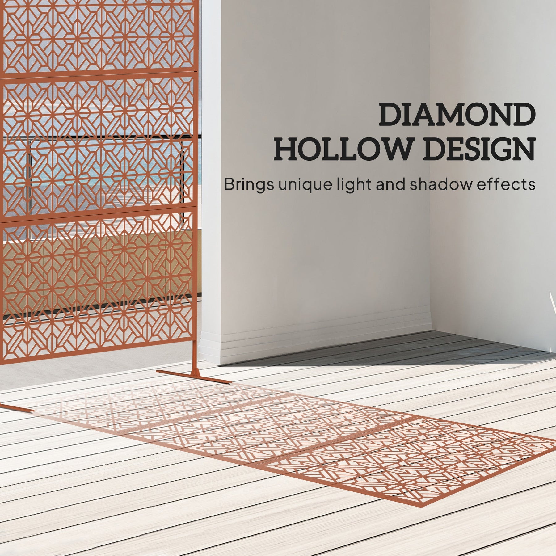 Create a private, stylish retreat in your outdoor space with the Outsunny Diamond-Shaped Cut-Out Decorative Privacy Panel. Perfect for dividing large yards or adding intimacy to any area, this screen features a modern diamond design that serves as both a functional space divider and a striking landscaping accent. Its hollow structure offers ample gaps, making it ideal for climbing plants like ivy and vines to thrive while enhancing the aesthetic of your garden. Built from solid steel and coated with protective paint, this panel is durable and resistant to rust and water damage, ensuring long-term use. Easy to install with expansion screws, the privacy screen stays stable even in windy conditions, giving you peace of mind and lasting privacy.