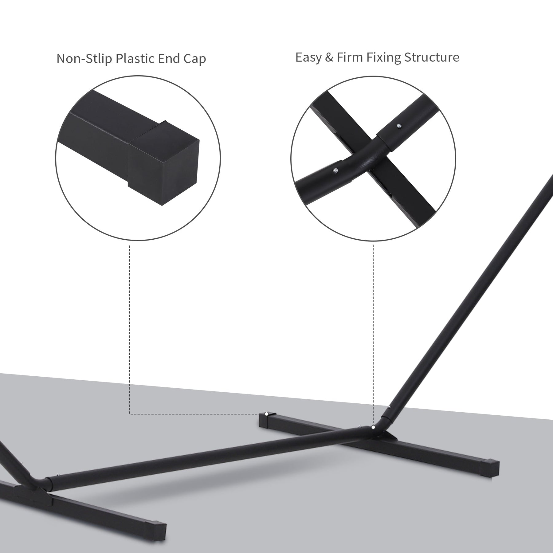 Add a modern touch to your outdoor or indoor space with this stylish hammock stand. Designed to accommodate hammocks up to 11.8 feet in length, it features a unique curved arc design that enhances your outdoor aesthetic. The heavy-duty metal cube frame is built for stability and durability, providing weather resistance, mildew resistance, and rustproof protection to ensure years of reliable use. With easy assembly and all necessary hardware included, this hammock stand is perfect for relaxing in your garden, balcony, porch, or courtyard.