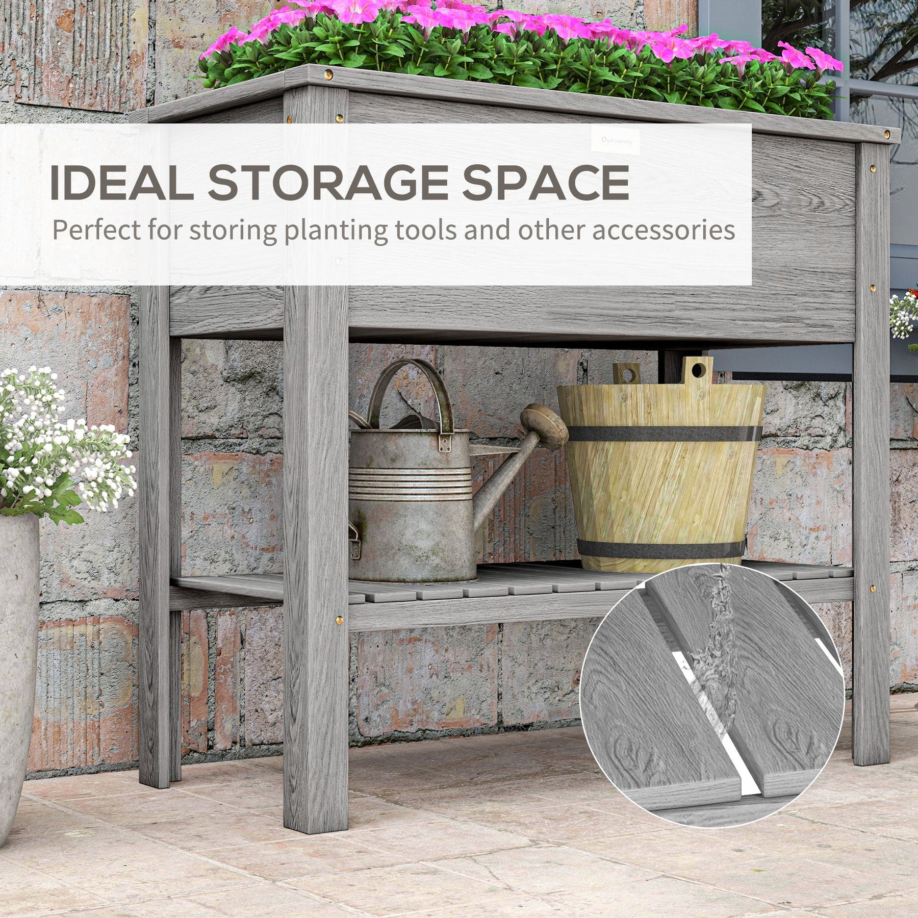 2-Tier Design: Offers ample space for planting in the upper tier, with the lower tier serving as a storage area for tools and accessories.