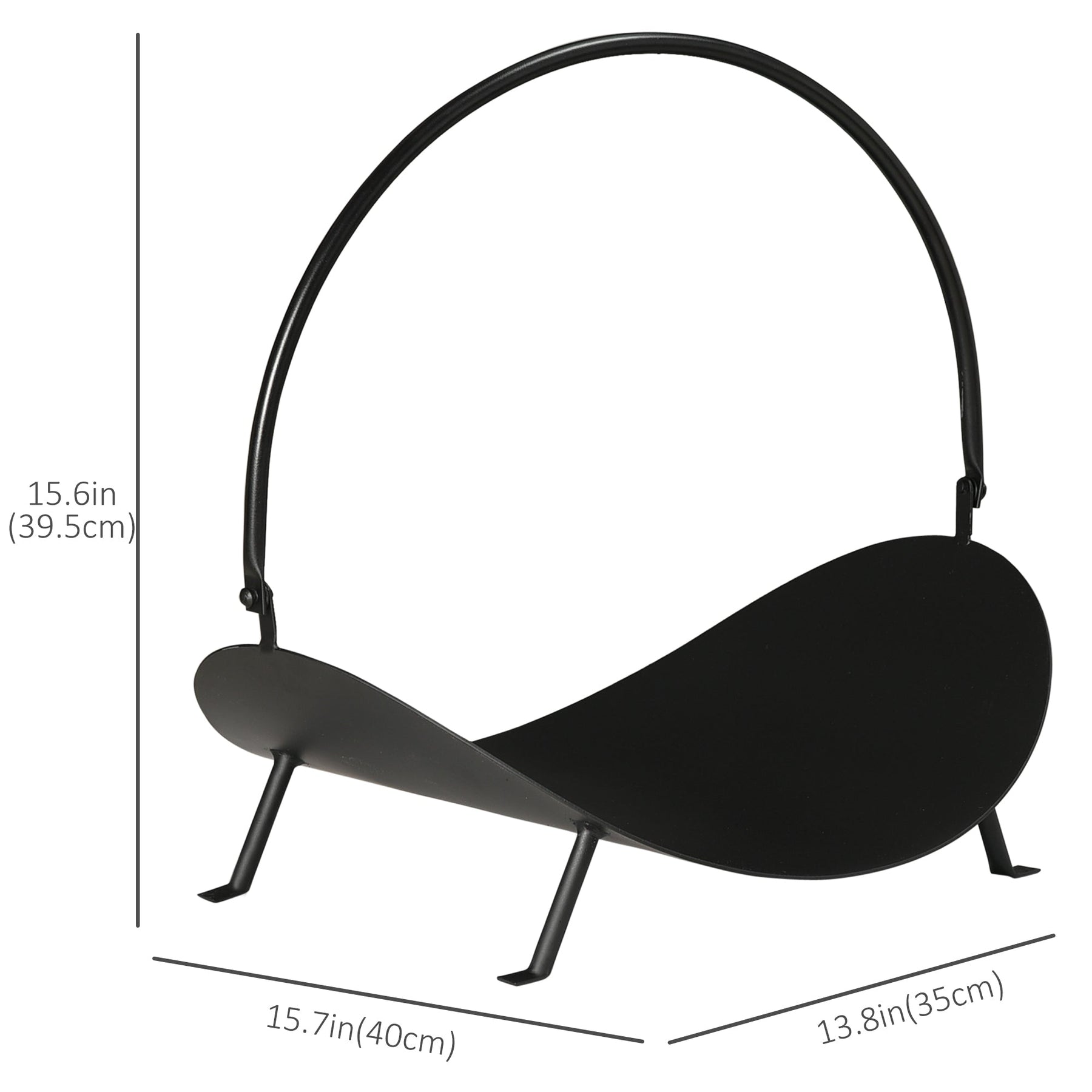 Store and transport your firewood in style with this elegantly designed arc-shaped firewood basket. Its elevated, curved frame keeps logs off the ground, ensuring they remain dry and neatly stacked without falling out. Whether used indoors beside your fireplace or outdoors near a fire pit, this versatile piece enhances organization while adding a decorative touch to your space. Built from solid steel with a black electrostatic powder-coated finish, it’s both durable and weather-resistant. With a flexible round handle, this basket is easy to carry and also doubles as a stylish storage solution for books, magazines, or other household items. No assembly is required—just unpack and enjoy.