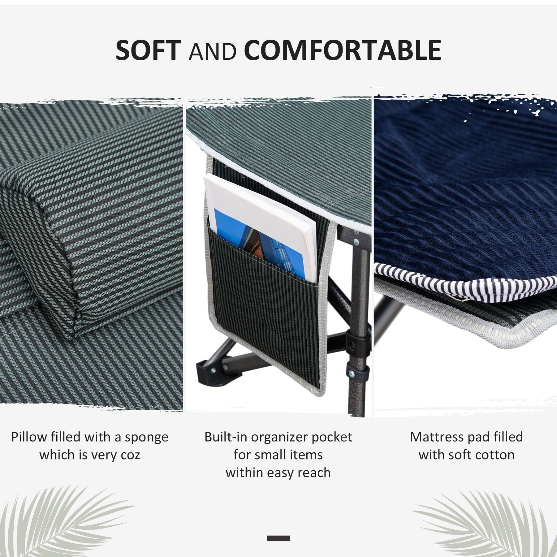 Experience the ultimate comfort and portability with this versatile folding camp cot, designed for easy setup and convenient storage. Whether you're camping, hiking, or need a temporary bed for indoor use, this cot is perfect for any adventure. It features a portable folding design and comes with a travel bag, allowing you to effortlessly take it wherever you go. The dual-use mattress offers both comfort and versatility—one side is soft velvet for warmth in colder seasons, while the other side is made of ice silk to keep you cool in hot weather. With sturdy steel tubes and durable 600D Oxford fabric, this cot can support up to 330lbs, making it ideal for taller adults or heavier individuals. Additionally, the cot includes a comfortable headrest and a convenient storage bag for added comfort and functionality.
