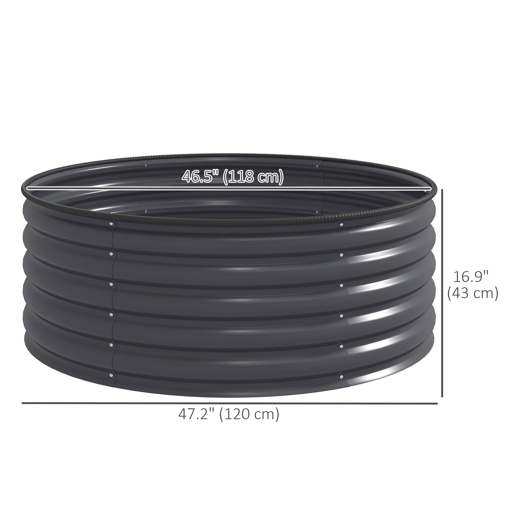 Support deep root development and vigorous plant growth with this spacious round Raised Garden Bed, designed with a depth of 16.9 inches (43 cm). Perfect for cultivating vegetables, herbs, and flowers, this garden bed offers a durable, weather-resistant solution for outdoor planting. Made from 0.6mm thick galvanized steel and coated for enhanced rust and weather protection, it is built to withstand changing outdoor conditions. The open-bottom design improves drainage and prevents root rot, fostering healthier plants. A protective rubber strip surrounds the top edge to prevent accidental cuts, and a pair of gardening gloves is included for added safety and comfort. Easy to assemble and suitable for patios, gardens, or backyard spaces, this metal planter combines practicality with peace of mind.