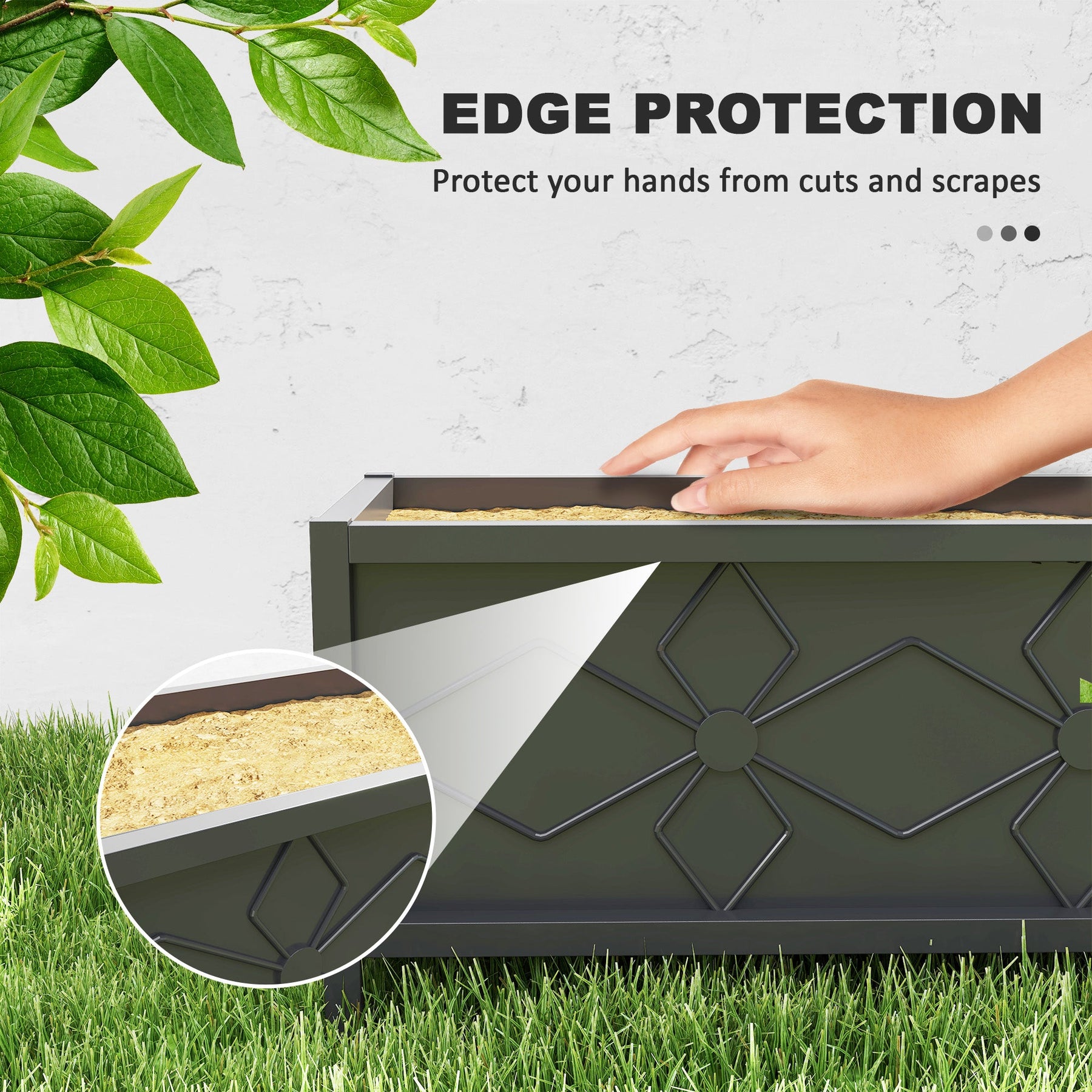 Create a neat and productive garden space with this metal Raised Garden Bed, designed for convenience, durability, and plant health. With a 72-liter soil capacity, this planter offers generous room for herbs, vegetables, or vibrant flowers, making it an ideal choice for urban patios, balconies, and backyard gardens. The built-in dual drainage holes prevent overwatering while promoting airflow to root systems for robust growth. Crafted from galvanized steel with a protective painted finish, it resists rust and moisture damage for reliable, year-round performance. Safety is also a priority with its smooth, folded-edge design that helps prevent accidental cuts during installation or daily gardening tasks.