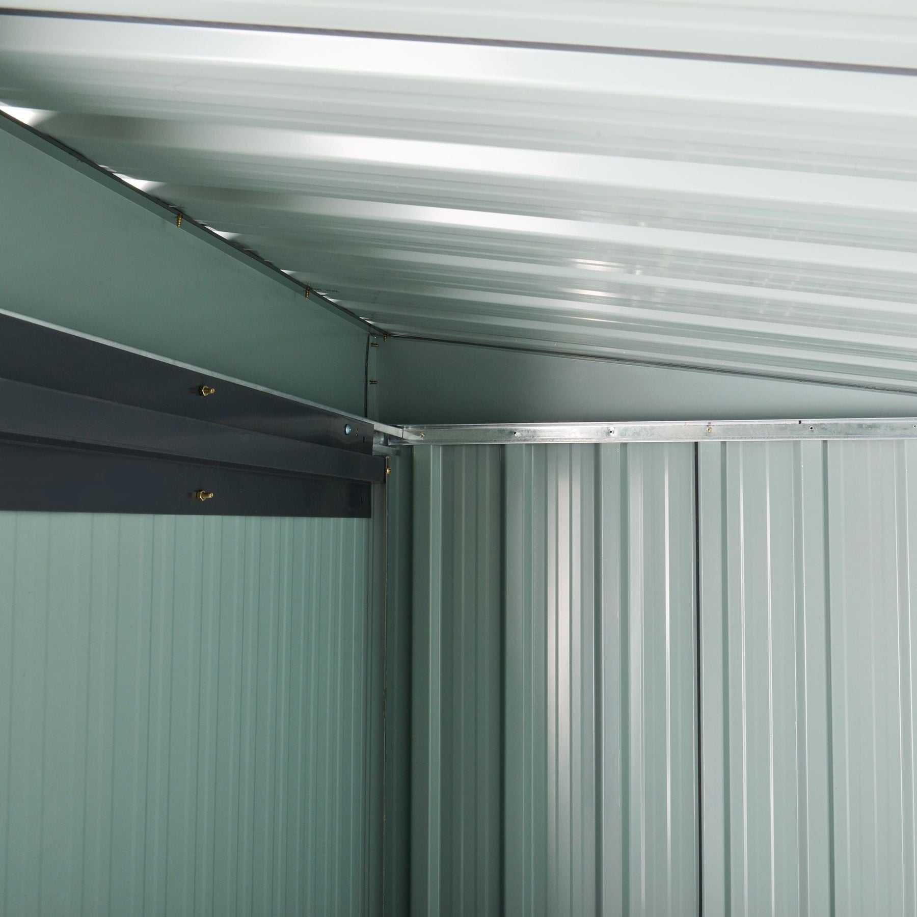 Maximize your outdoor storage with this sturdy galvanized steel storage shed, ideal for keeping your gardening tools, equipment, and other outdoor gear safe and organized. With a spacious 12 ft² floor area, this compact yet practical shed offers ample room for your belongings. The sleek single sliding door design allows for easy access, making it simple to retrieve and store items. The high-grade galvanized steel construction ensures long-lasting durability, while the simple and elegant appearance blends seamlessly into any backyard, garden, or outdoor space. Assembly is required, and it is recommended that at least three individuals work together to assemble it within approximately three hours.