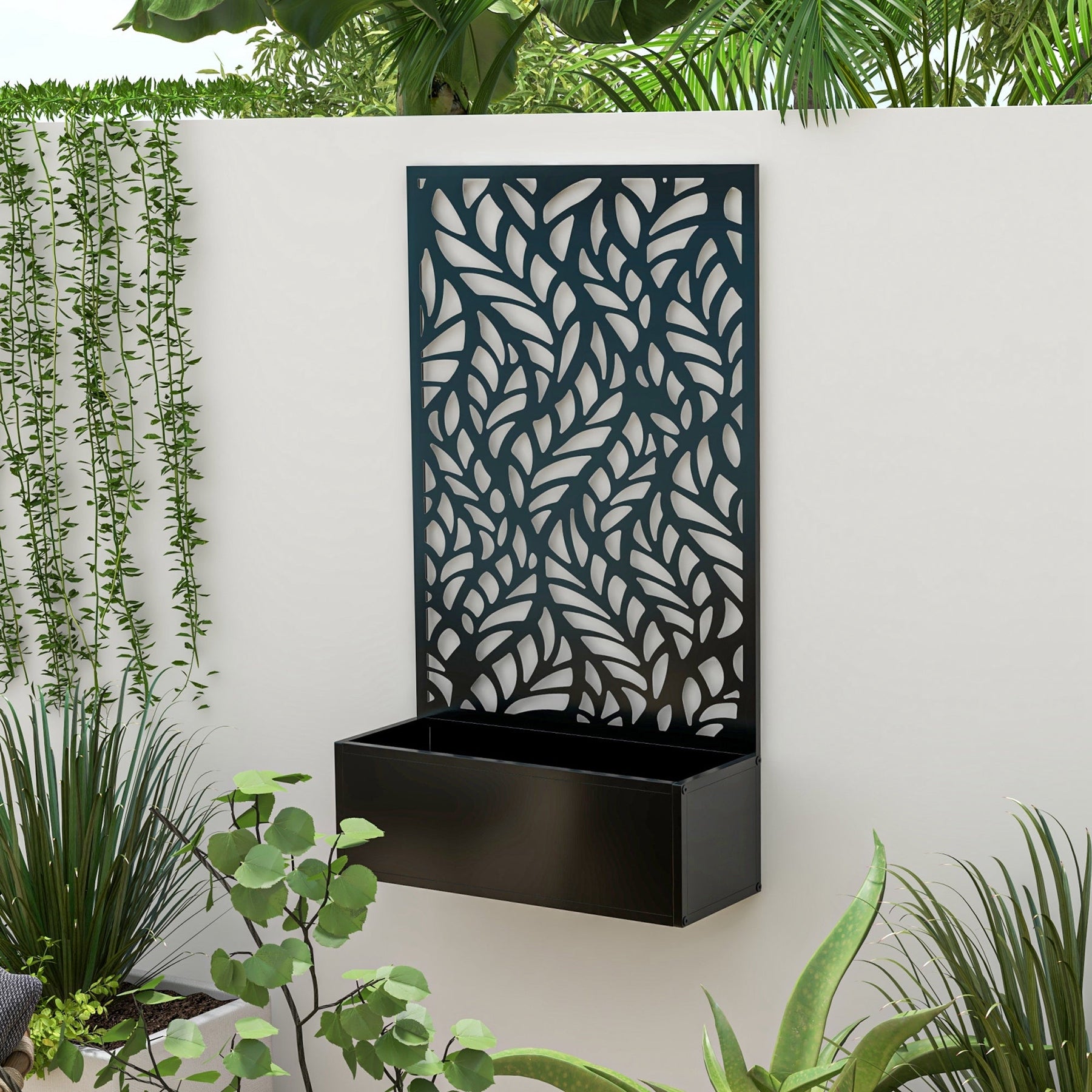 Outsunny Metal Privacy Screen with Garden Bed Freestanding or Wall-Mounted Planter Box for Outdoor Spaces